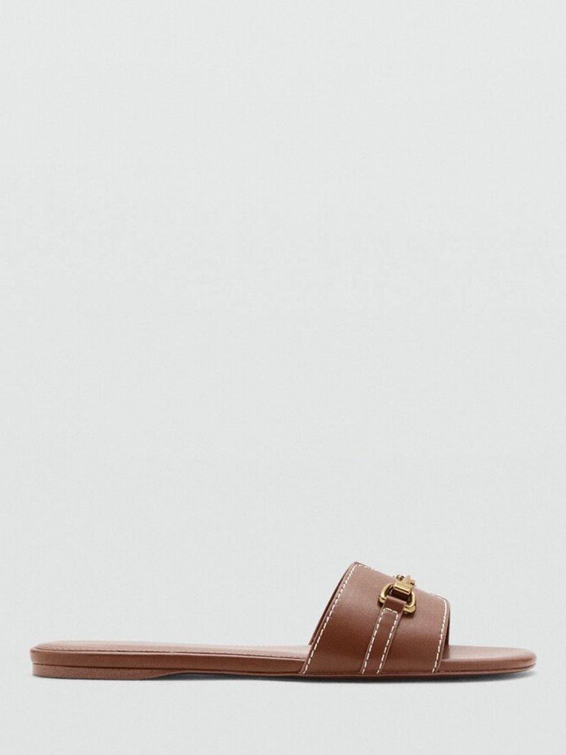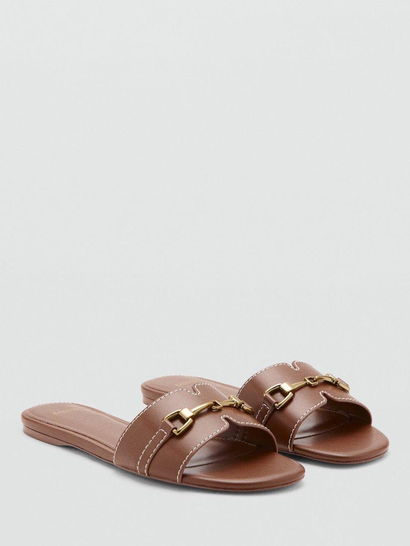 MangoMetallic Detail Strap Slider Sandals, Brown