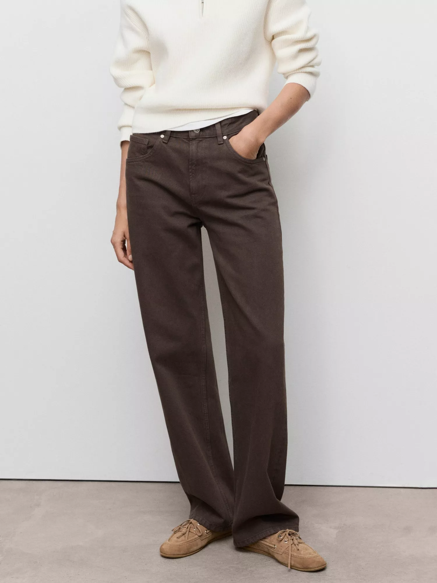 A pair of straight jeans from Mango. Made in denim featuring a mid rise and a classic zip fly, they fall to a regular length.