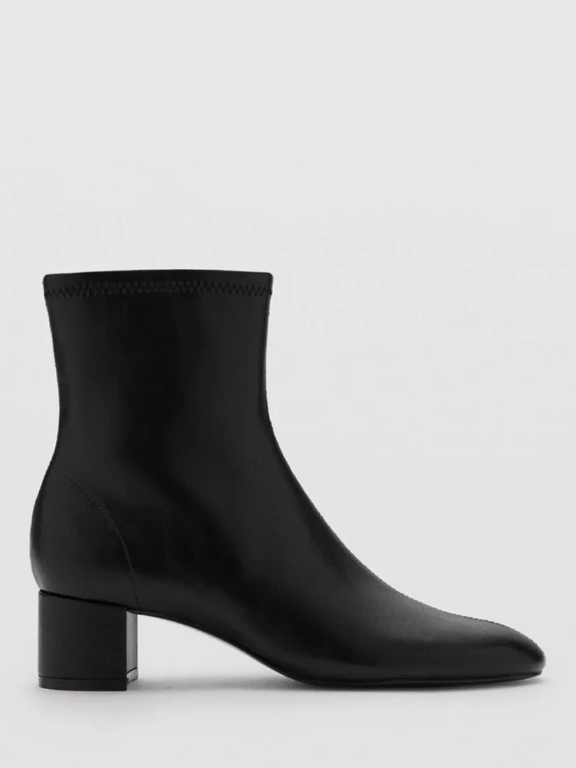 Mango ankle boots with a mid block heel, round toe and a side zip fastening. Enjoy effortless comfort and style, perfect for your smart day plans.