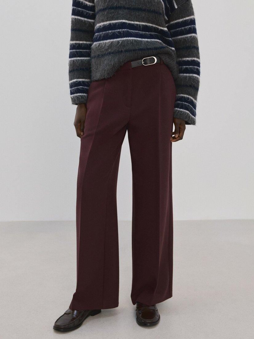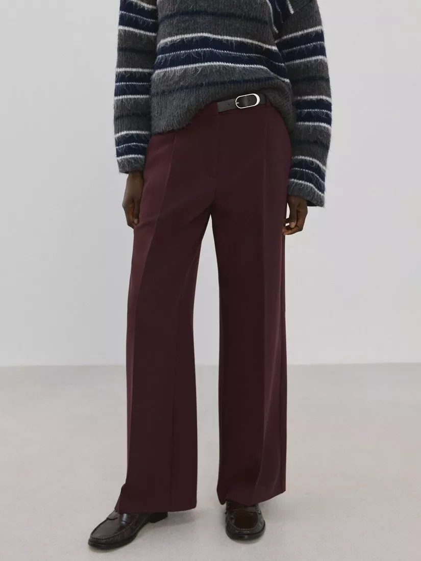 A pair of wide-leg tailored trousers by Mango featuring a mid rise waist with a belted detail.