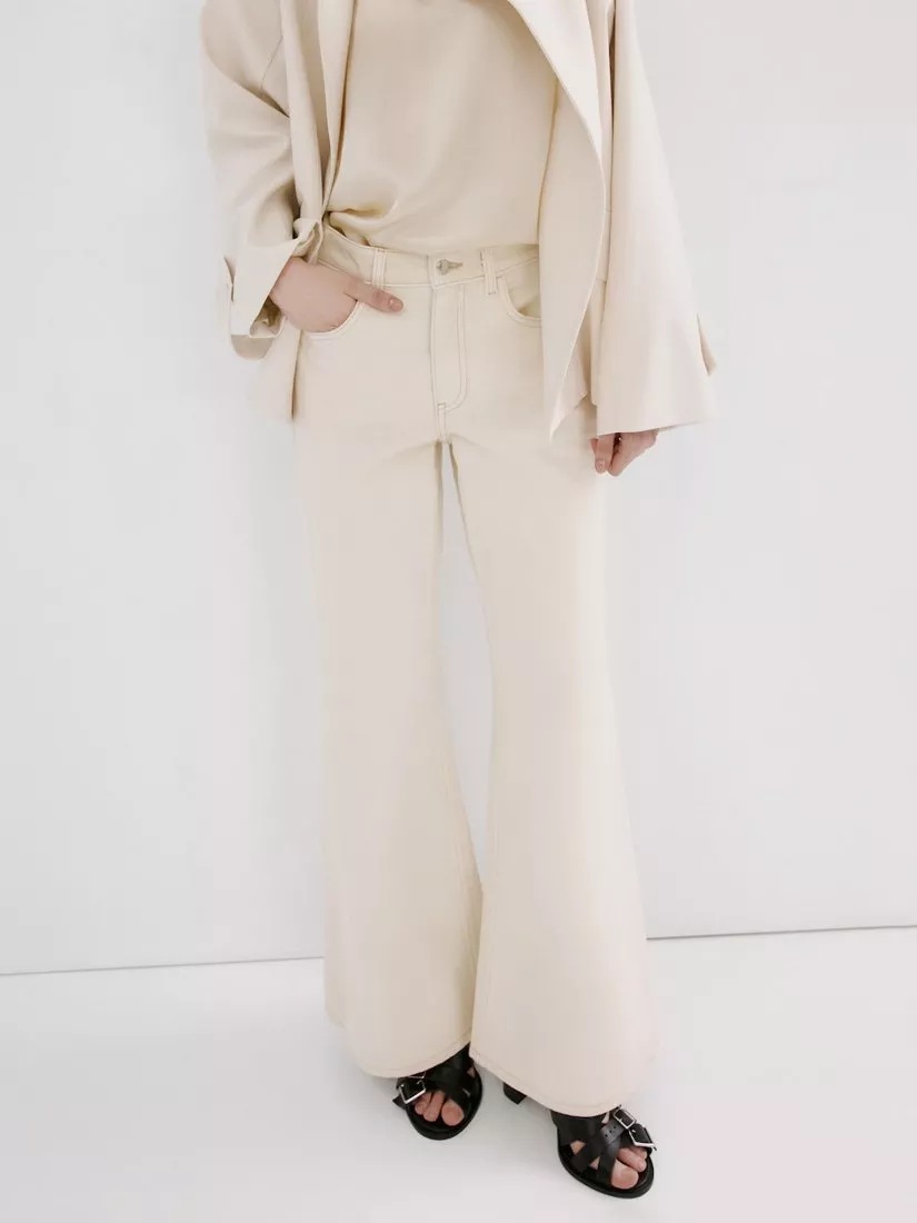 A pair of leg-lengthening jeans that fit slim through the hips and thighs before dramatically flaring from the knee. Made from pure cotton with a comfortable mid rise and a zip fly, they fall to a regular length.