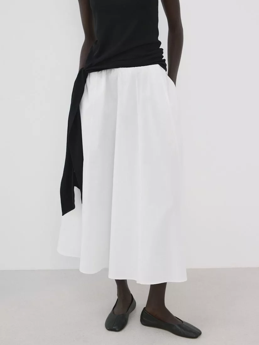This midi A-line skirt brings ease to your day, blending a lined finish with comfortable cotton.