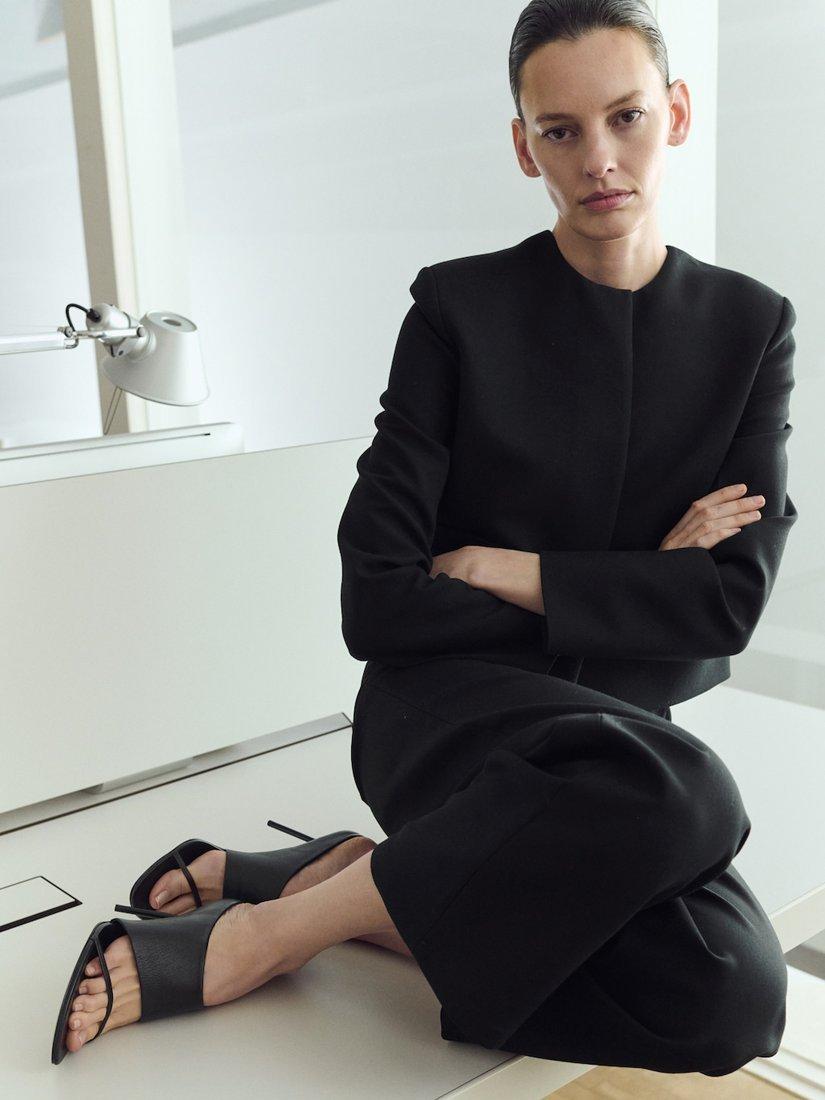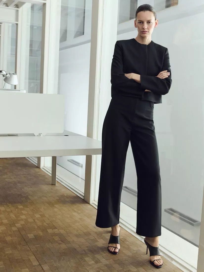 Straight leg trousers by Mango. They are designed to sit high on the hips with a zip fly and cropped hems.