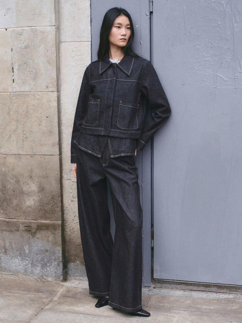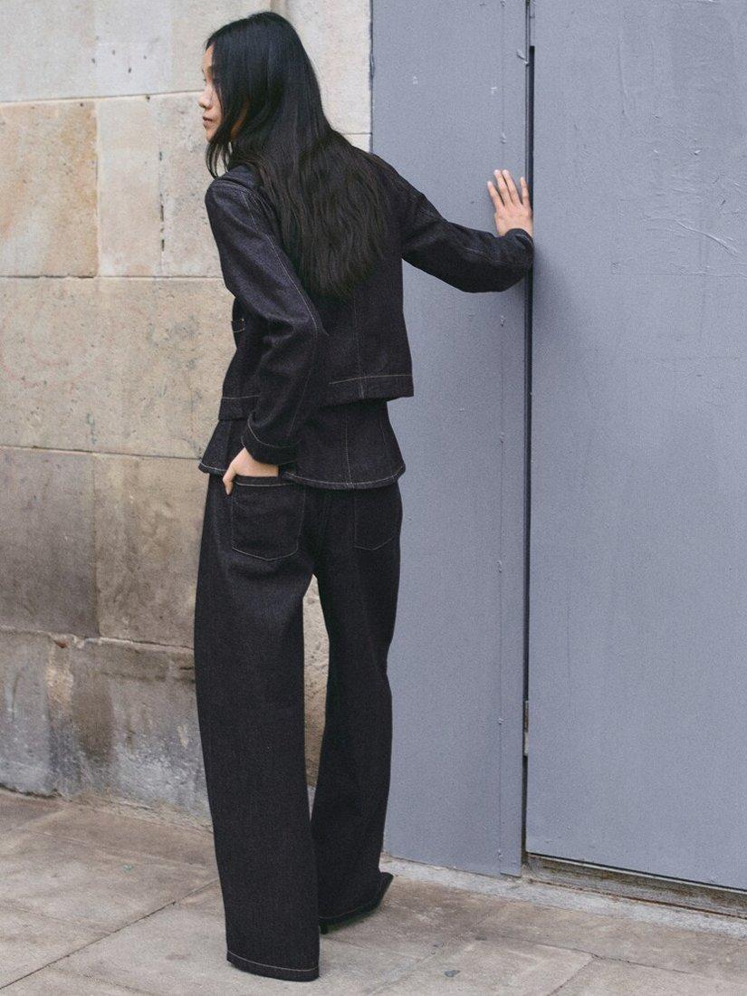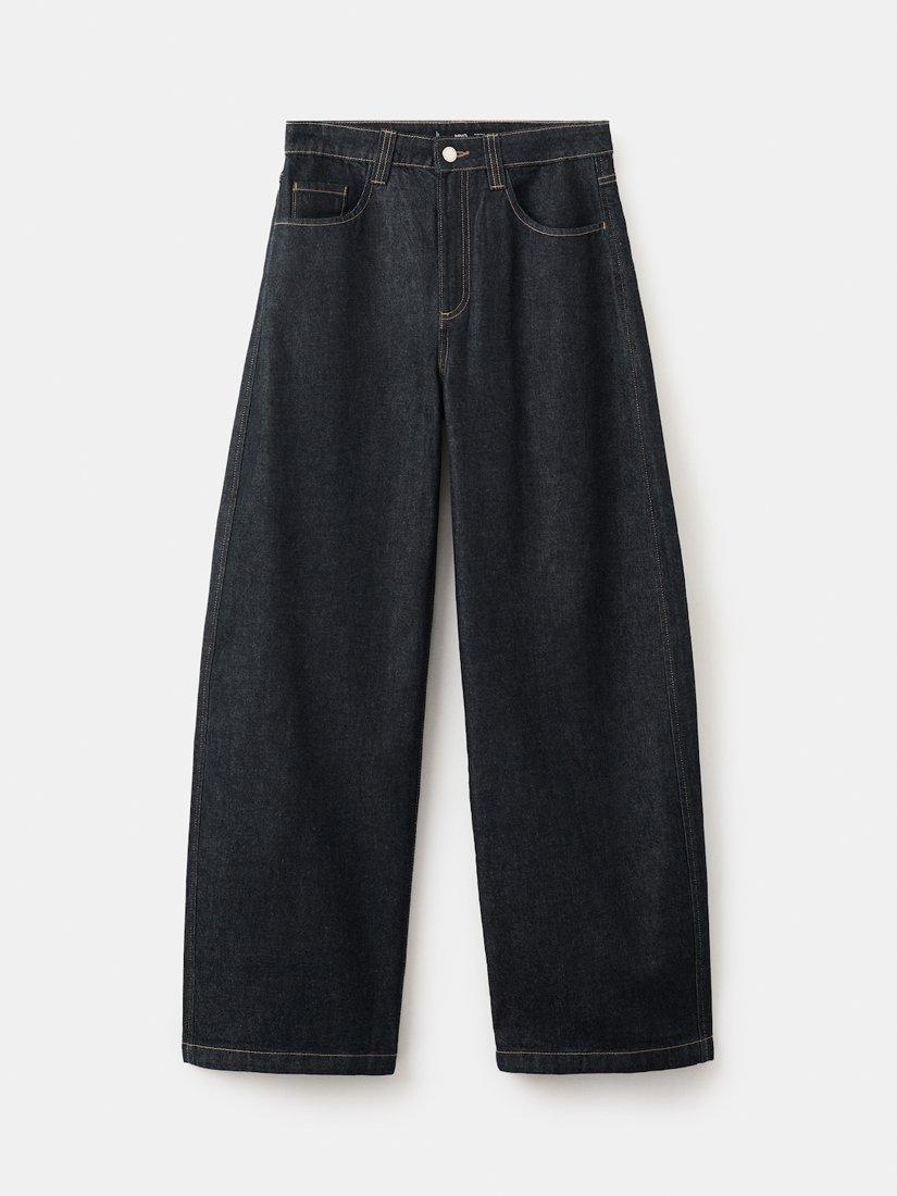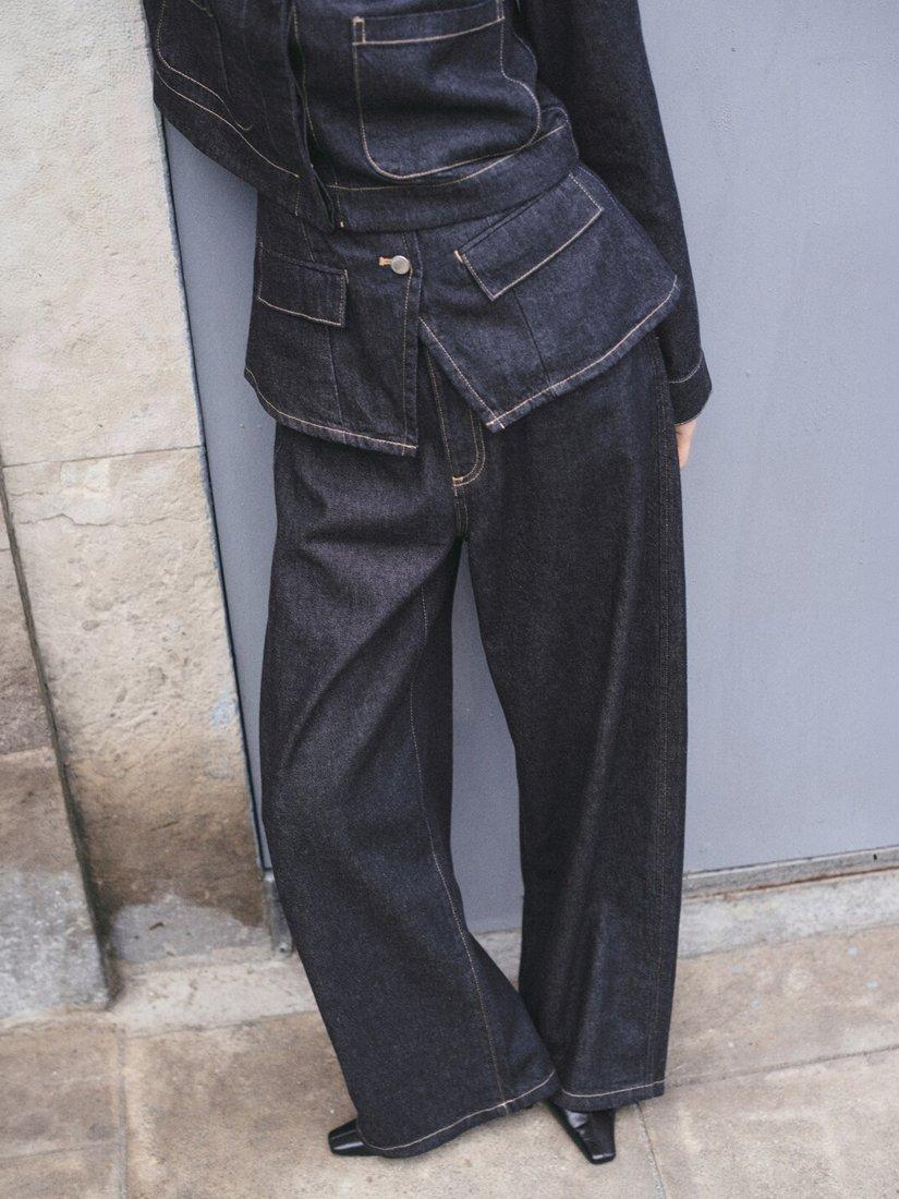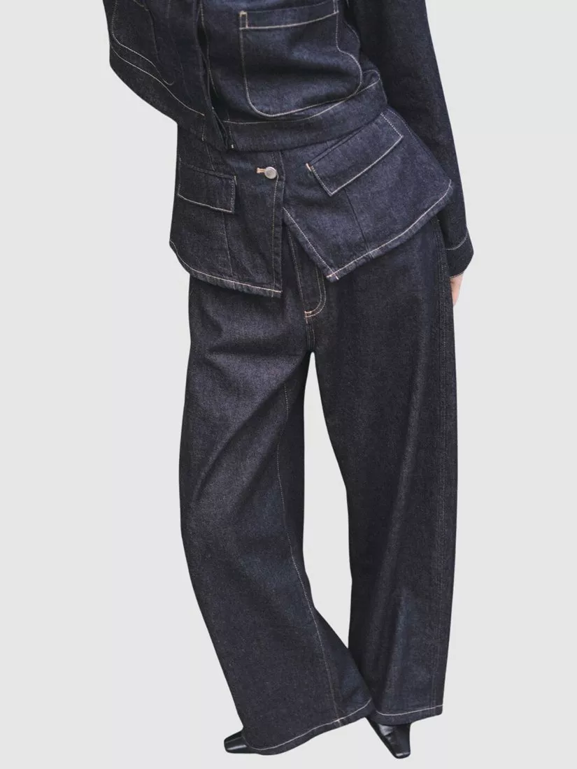 Architectural mid rise jeans, with a balloon silhouette and wide leg drape that moves seamlessly from day to night, sculpting a relaxed, structured profile.