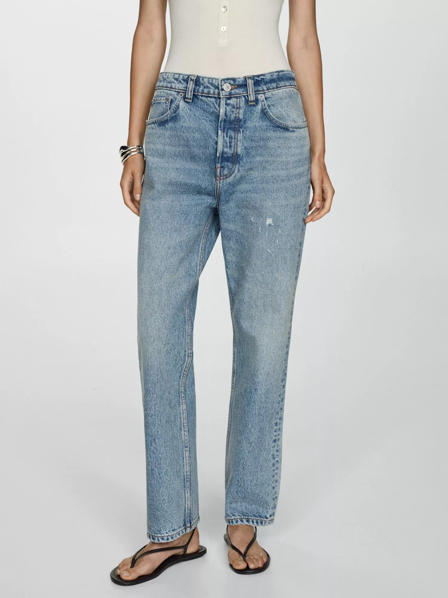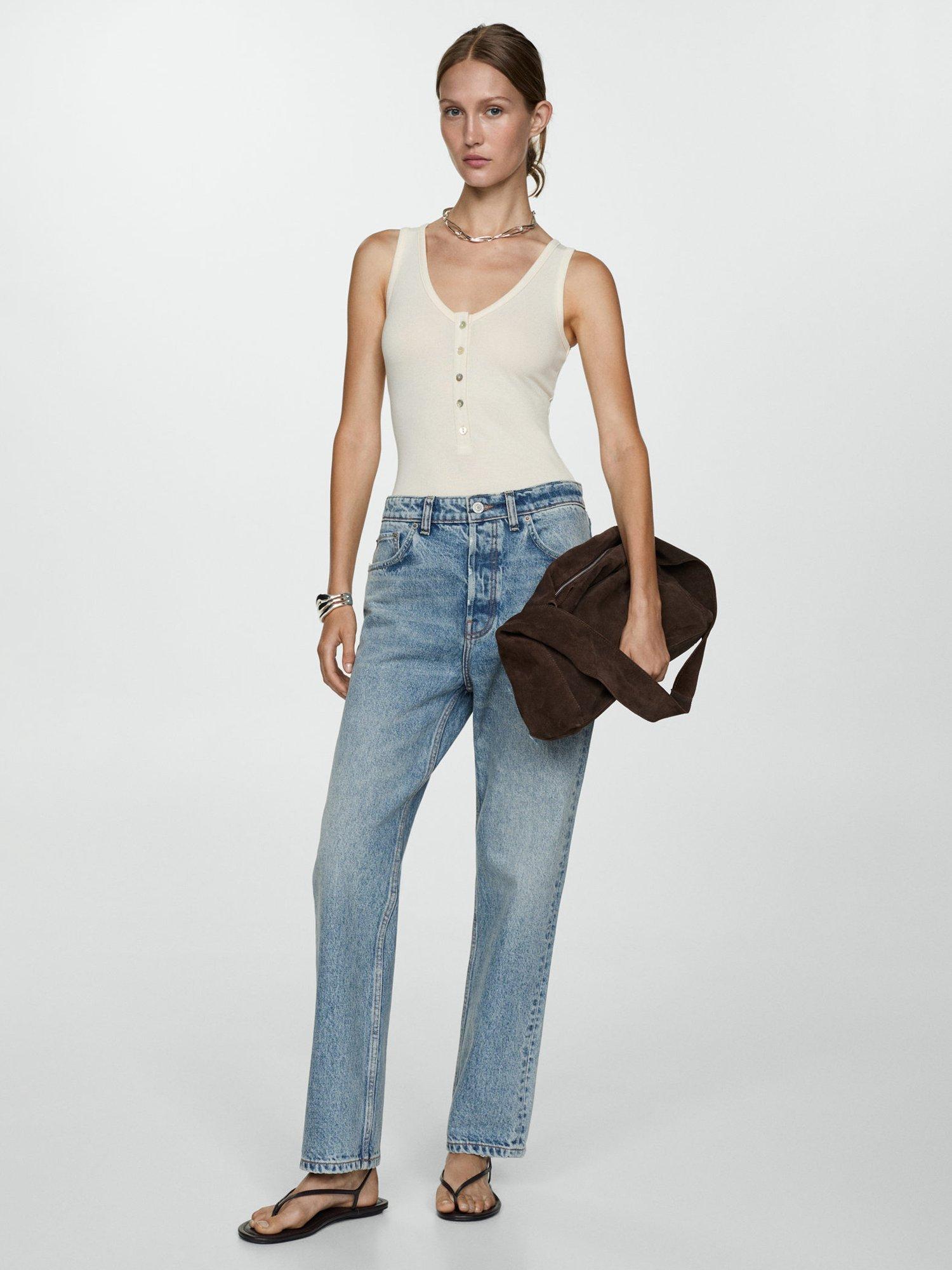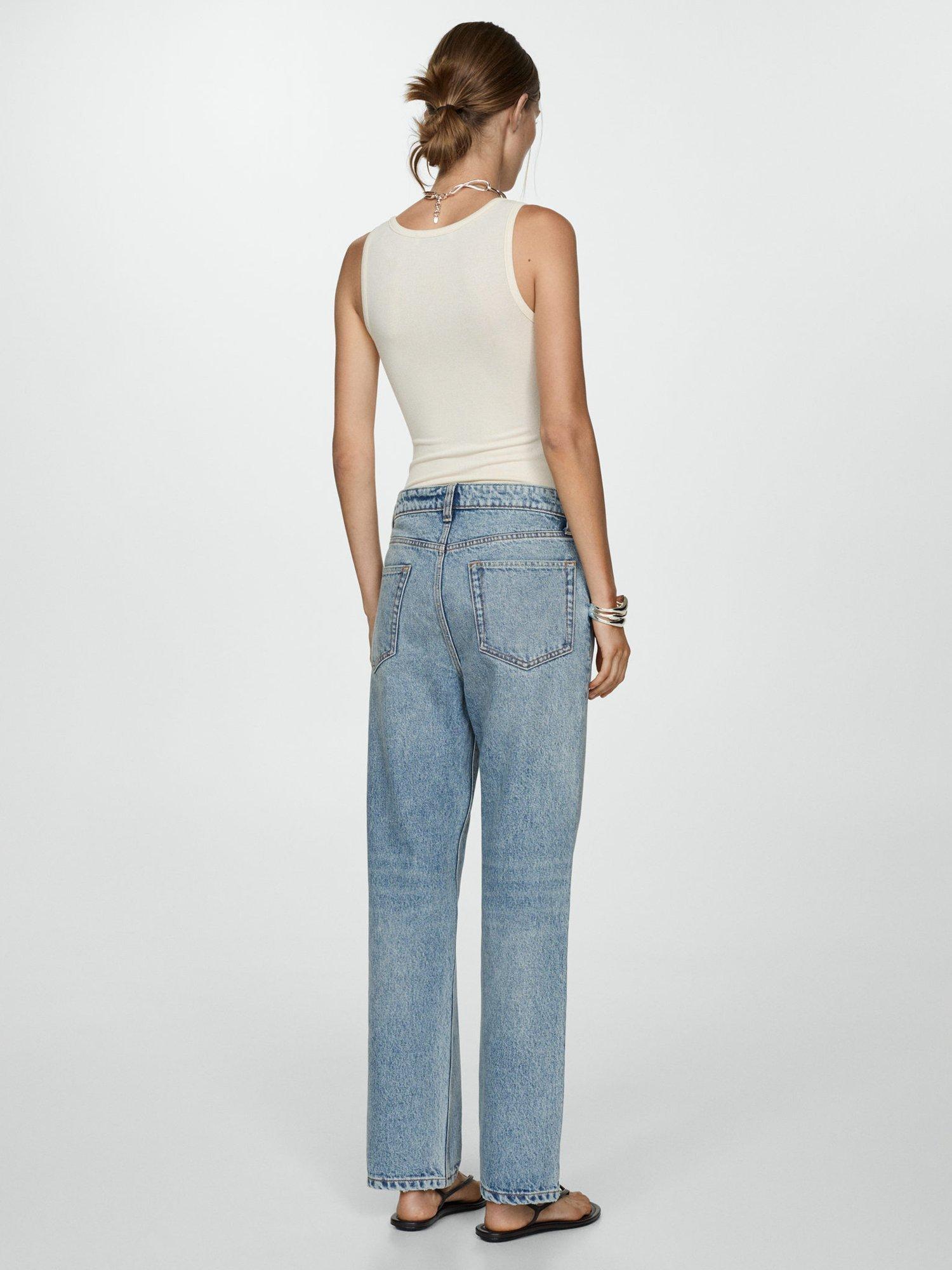 In a timeless straight cut, these mid rise jeans by Mango have a pure cotton construction and fall to a regular length.