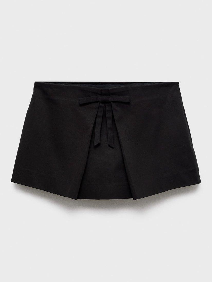 A mini skirt by Mango, formed in a cotton blend and layered with functional shorts. With a low waist and a pleated detail at the front, blending smart style with playful edge.
