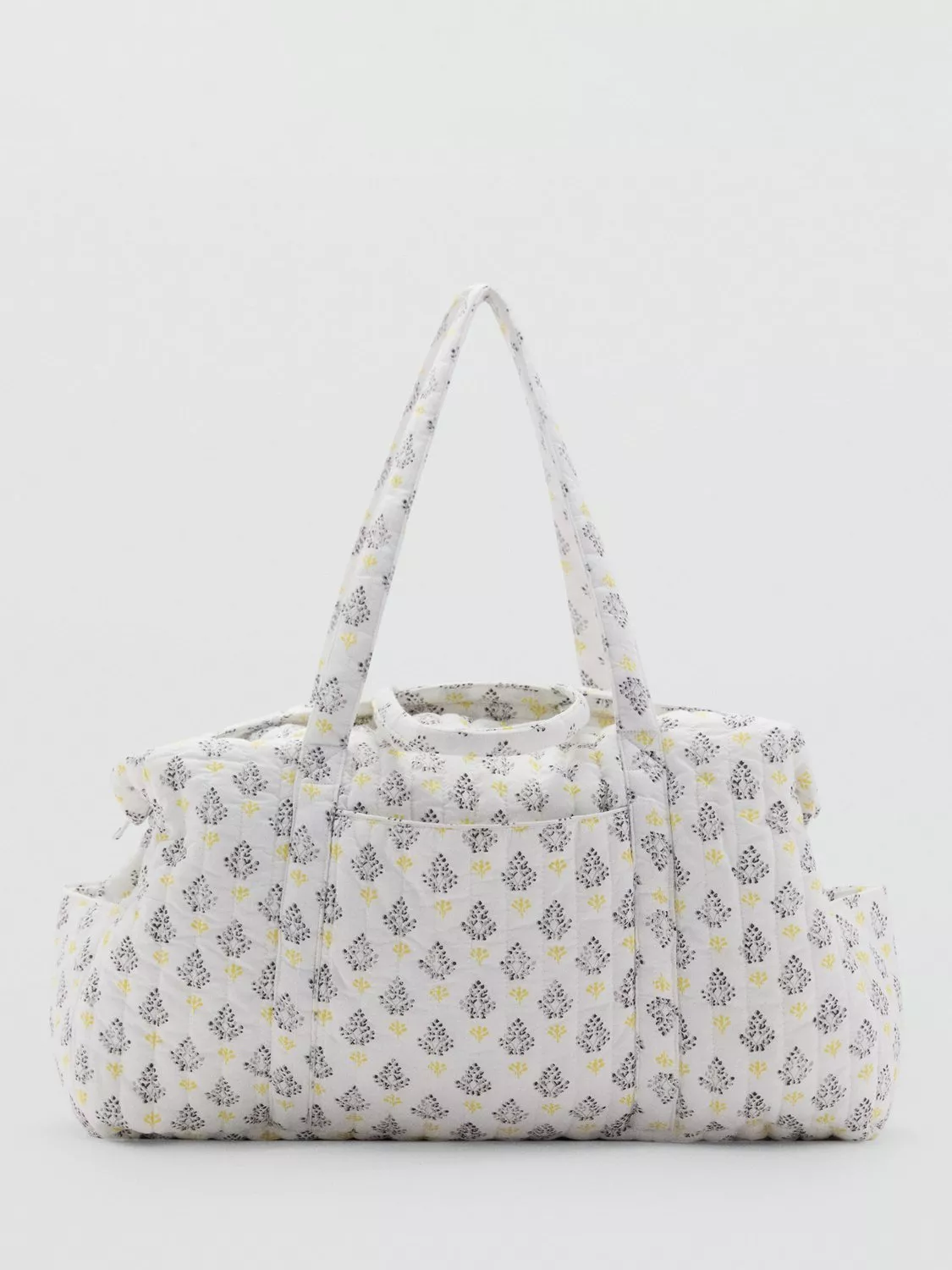 Aptly named the weekend bag due to its roomy interior, Mango bring you this iteration as part of their Maternity collection. In a quilted cotton design with a floral embroidered finish, it features a long adjustable strap for easy carrying.