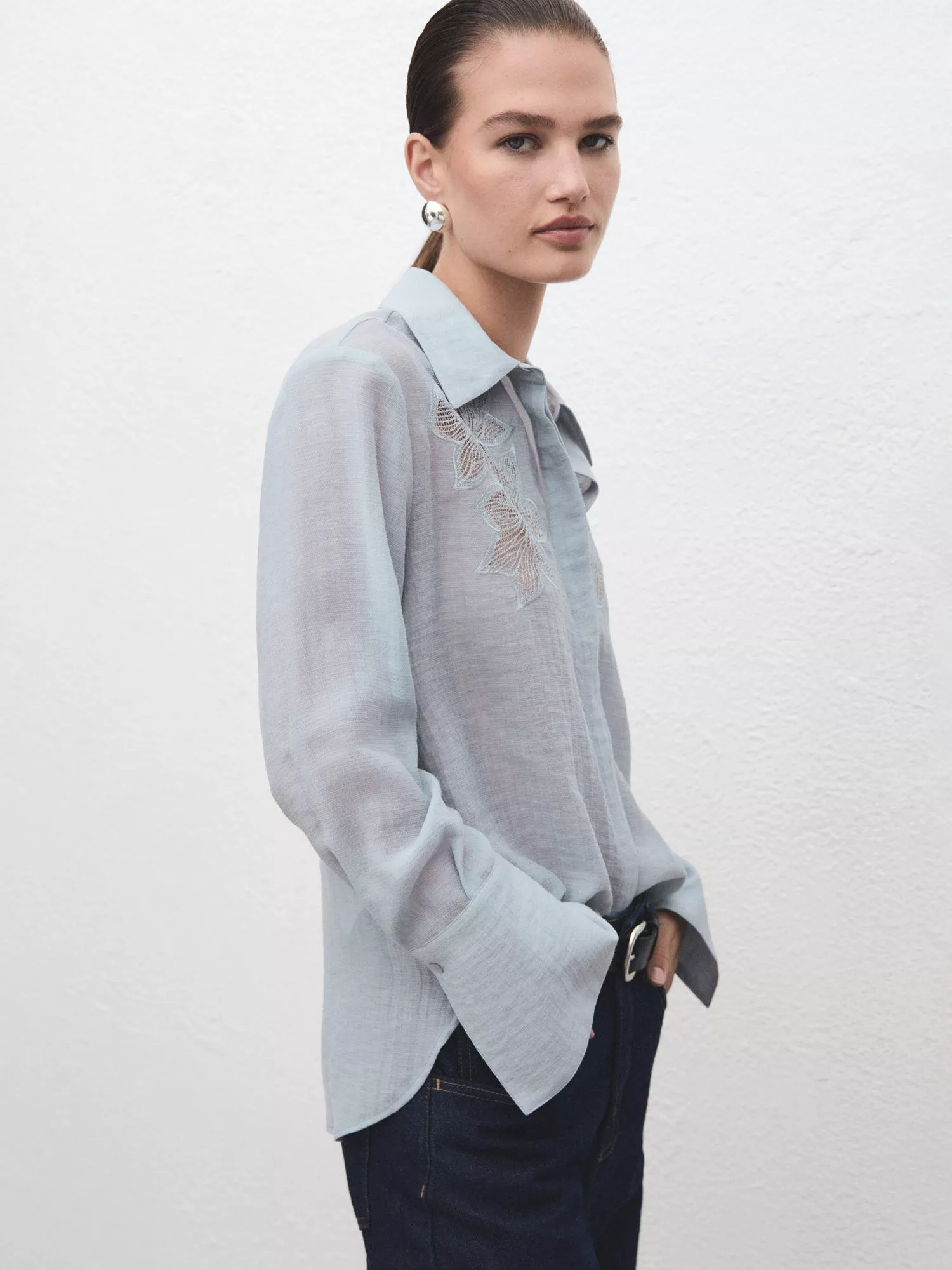 A blouse by Mango. With a collar neck and long sleeves, this piece boasts embroidered detailing.