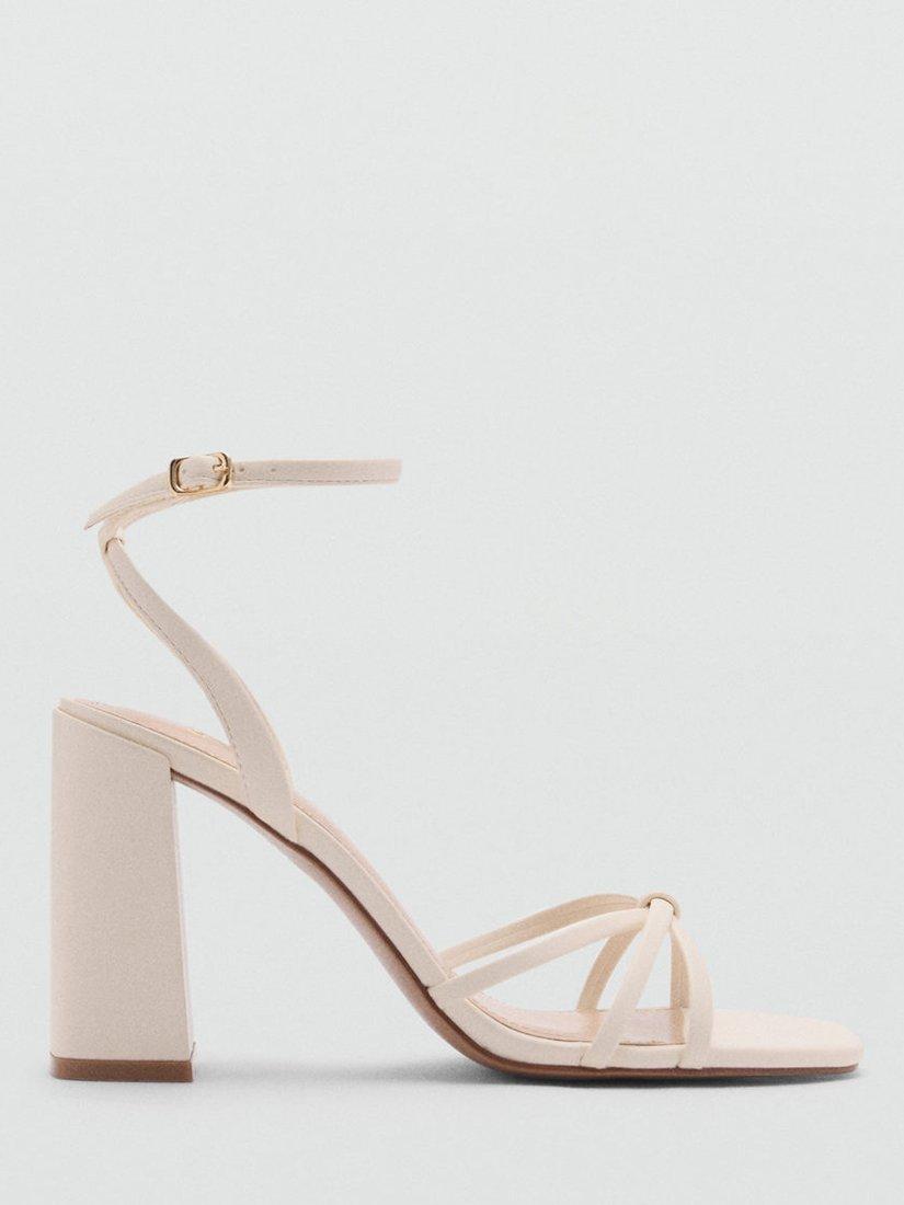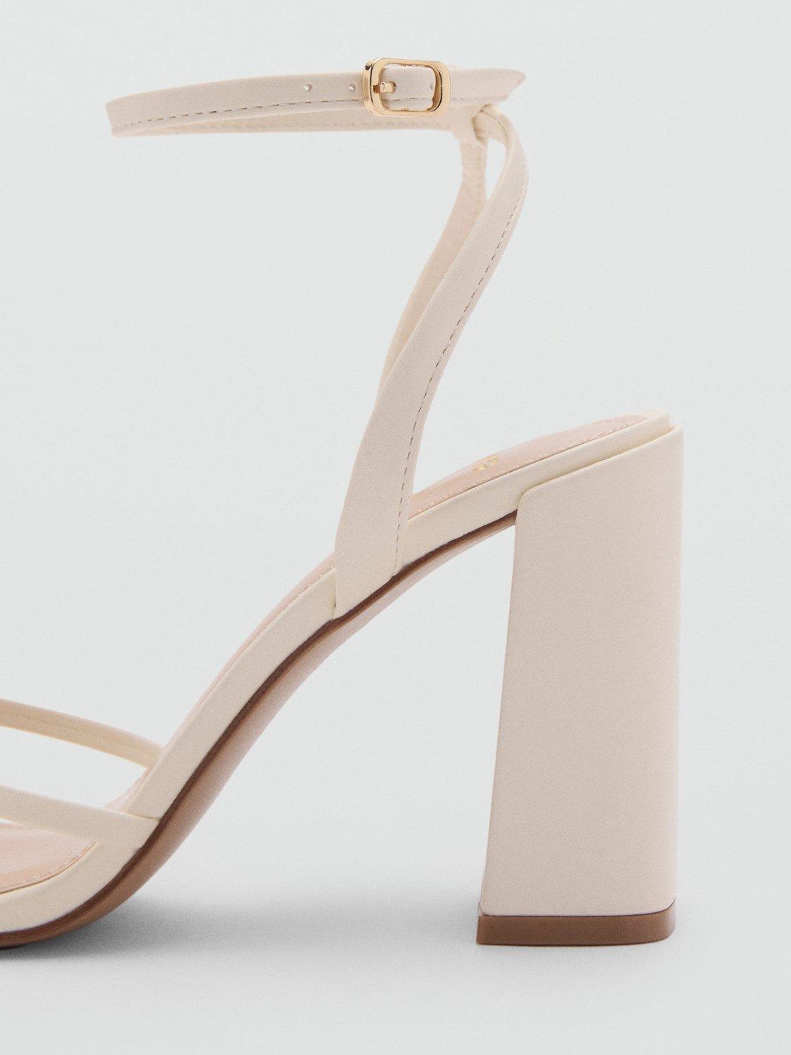 Structured into a simple silhouette, this pair of block heeled sandals from Mango are made from smooth faux leather with a squared off strappy toe and an adjustable ankle buckle.