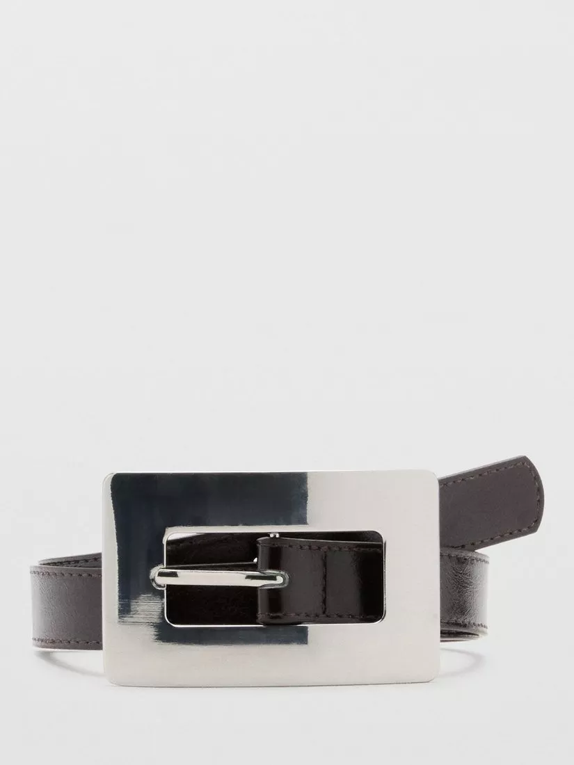 MangoMirror Buckle Belt, Dark Brown