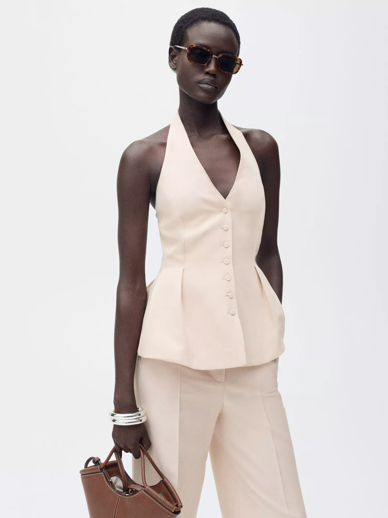 Tailored to a stunning shape, this halterneck waistcoat by Mango features a button front and a darted waist creating a peplum effect.