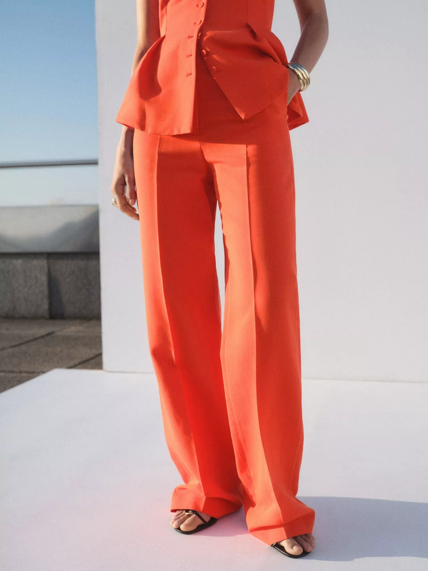 Confidently tackle your day in these tailored trousers, designed for comfort and sharp style. The mid-rise and straight wide-leg cut offer freedom and versatility, making them perfect for work or weekend plans alike.