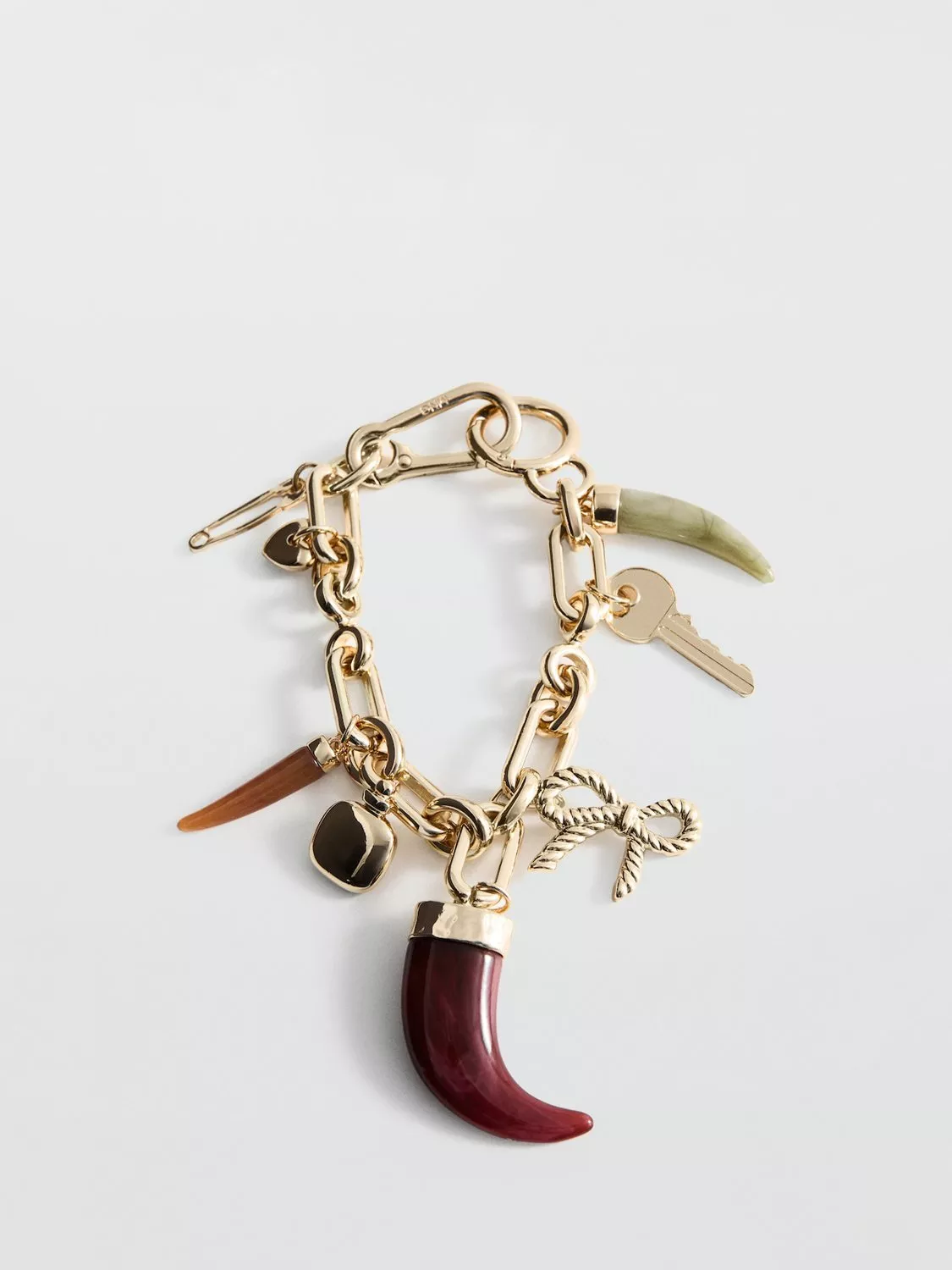 Artful charm keychain that upgrades everyday carry, featuring a sculptural horn pendant and twisted bow accent on a substantial chain for statement-ready styling.