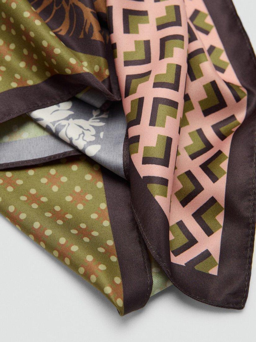 Made to complement your ensemble, this square scarf from Mango features a mixed polka dot geometric print.