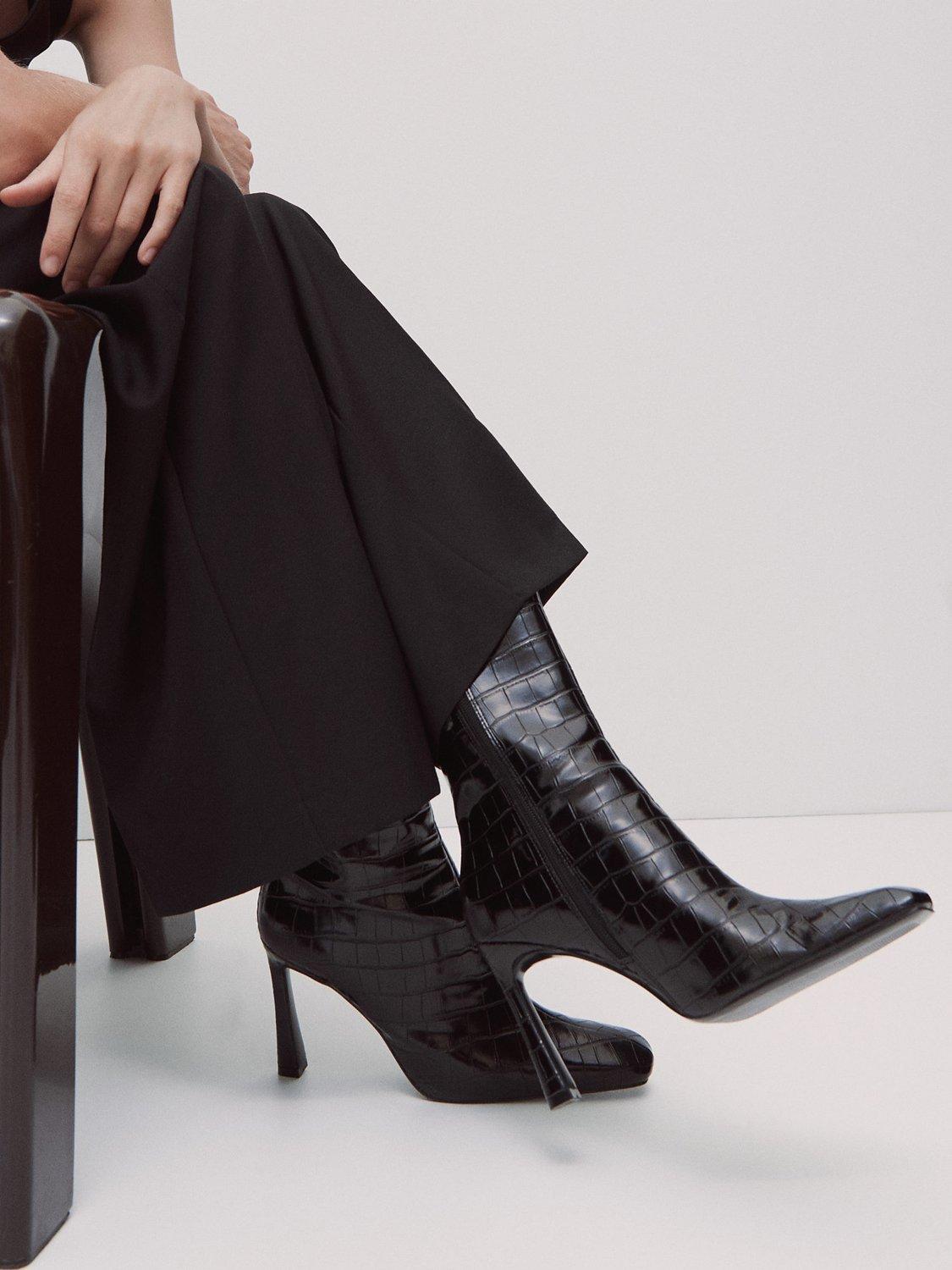 Pulling on for autumnal appeal, this pair of ankle boots from Mango are made from a faux leather with a croc-effect finish.