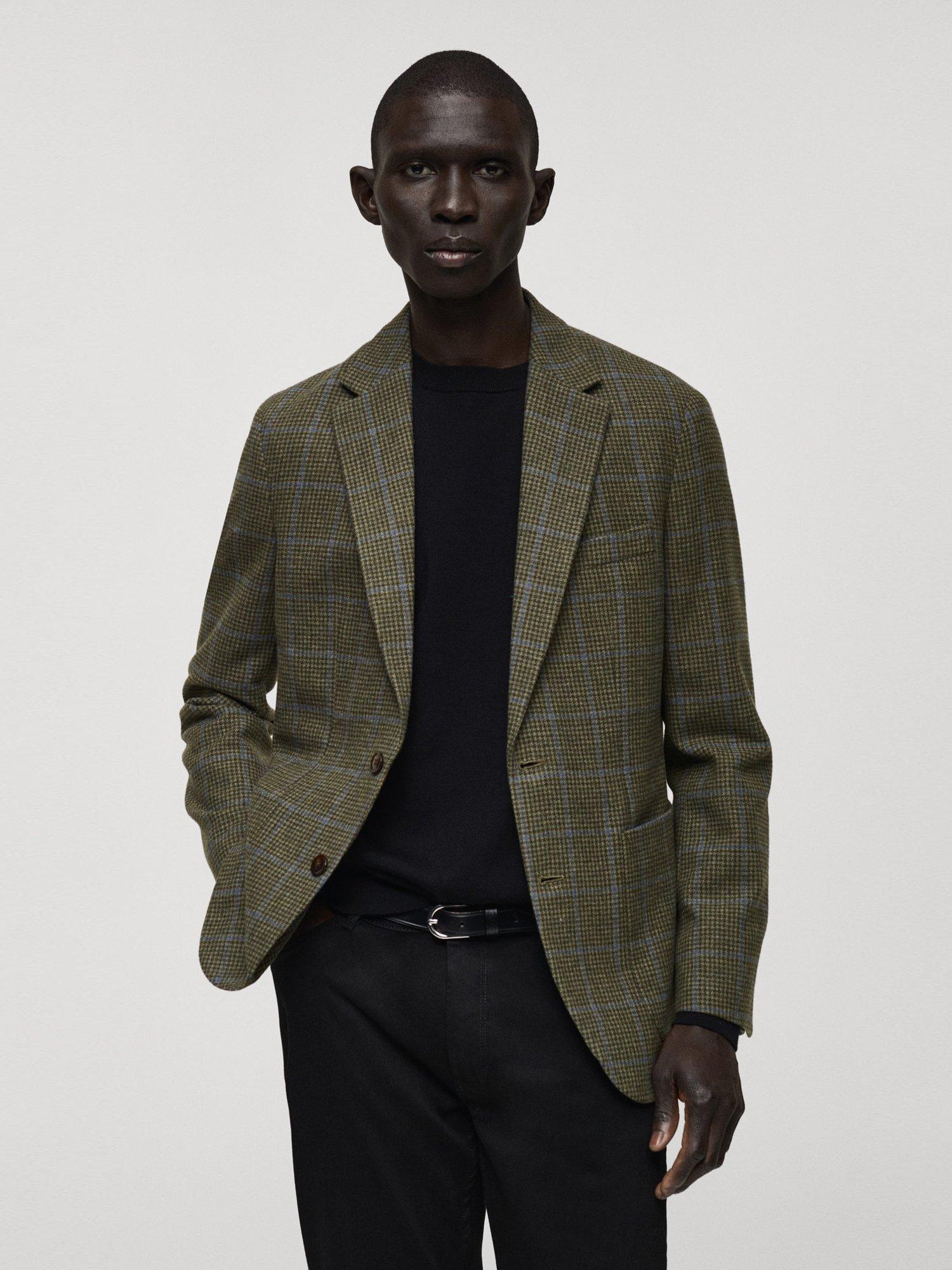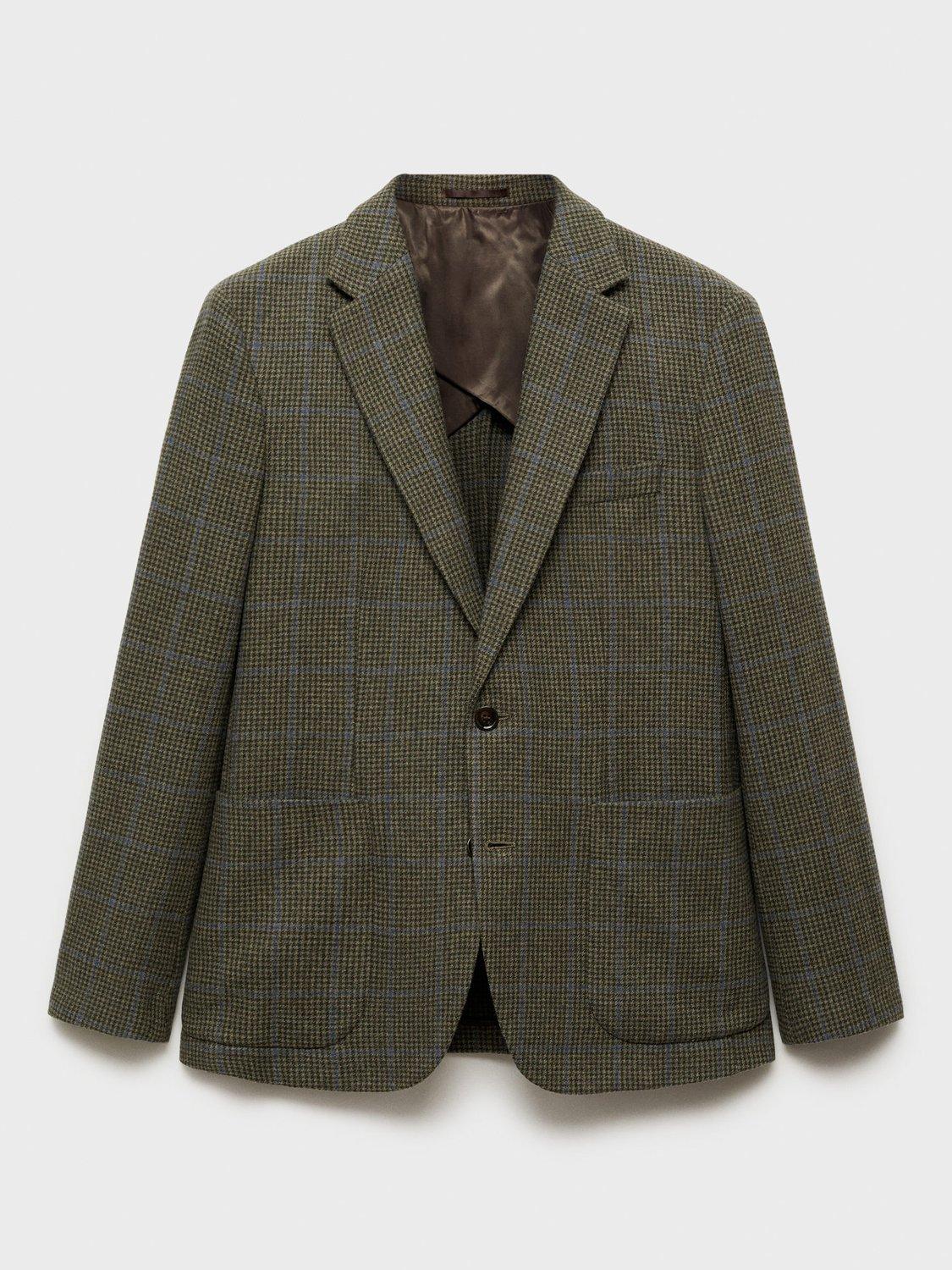 MangoMolina Houndstooth Wool Rich Slim Fit Suit Jacket, Green