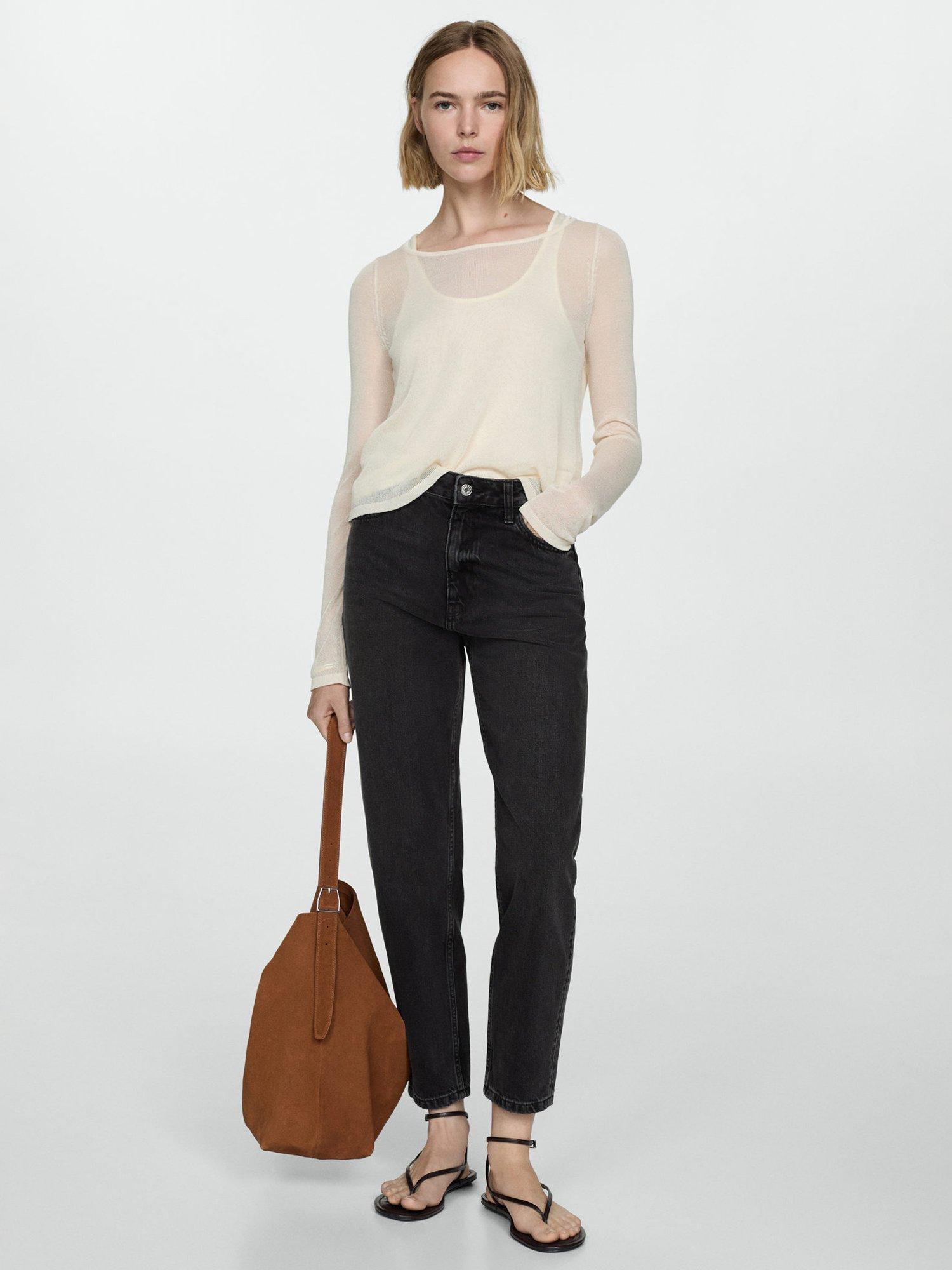 Cut to the iconic mom style, these mid rise jeans by Mango have a pure cotton construction and are cropped for a fresh look.