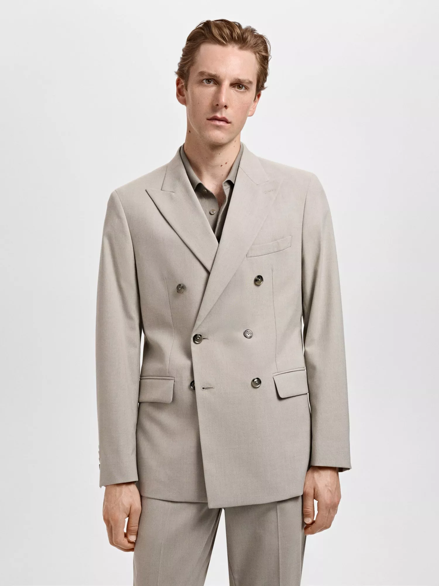 Make a sharp impression with this slim fit double-breasted Mango blazer - crafted for comfort. Effortless tailoring meets smart detail, offering a versatile layer that works as hard as you do, wherever the day leads.