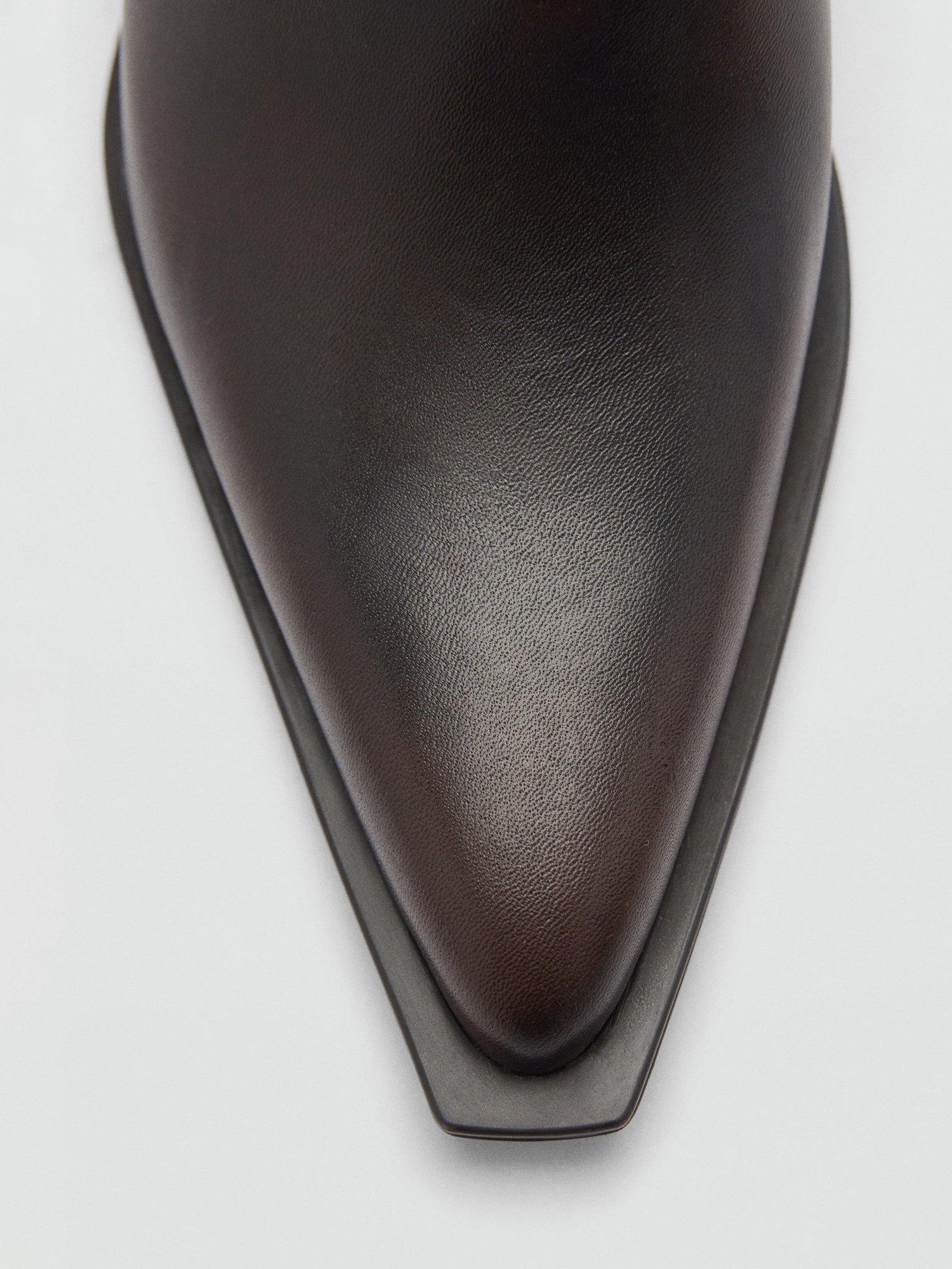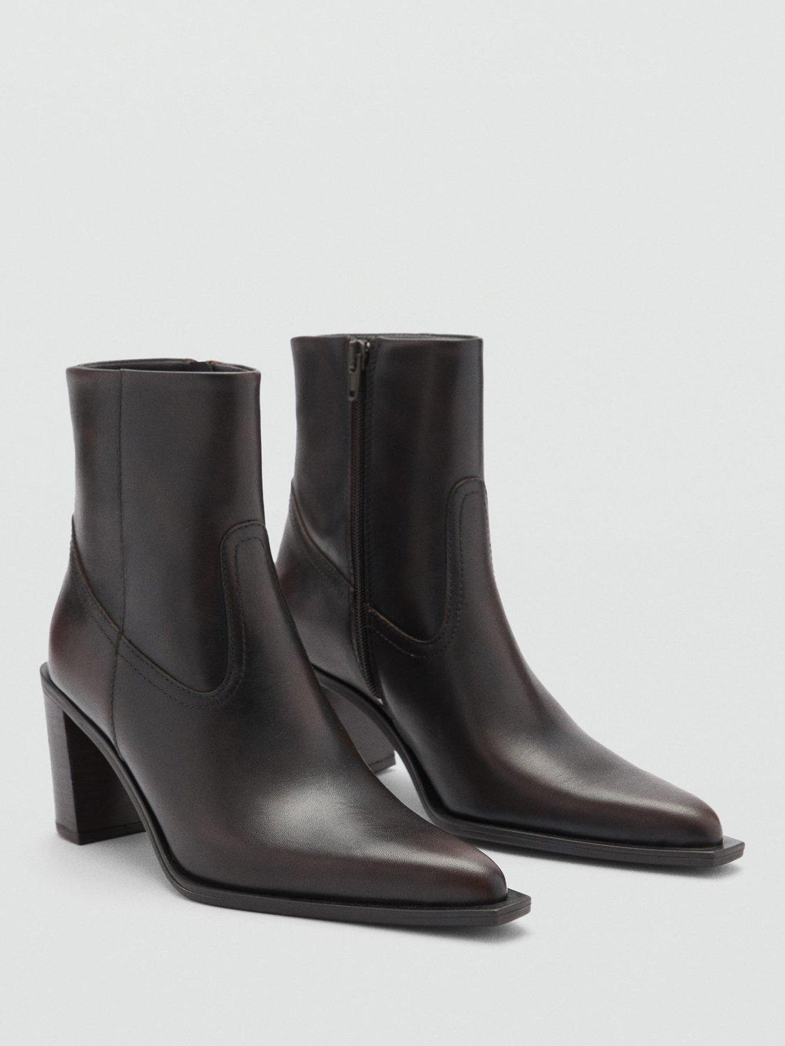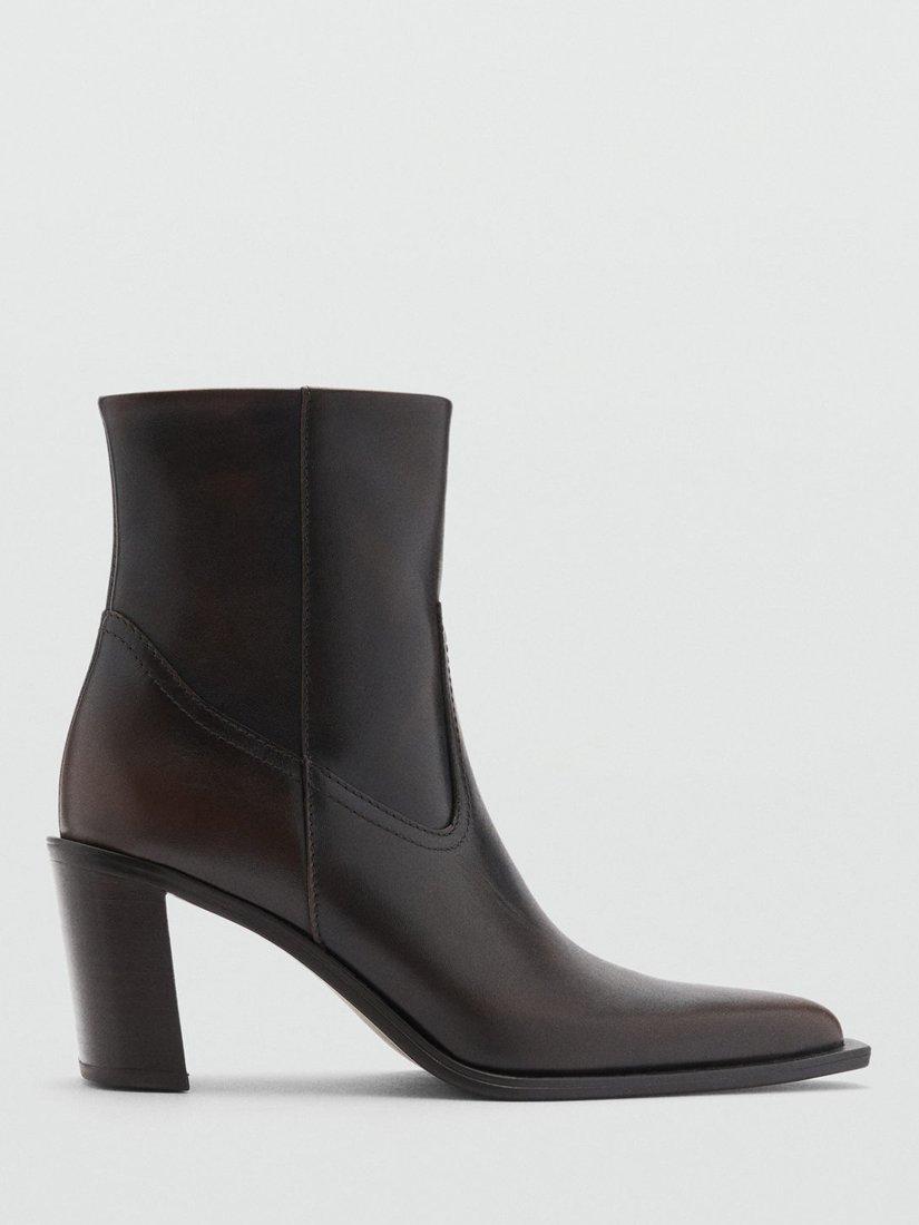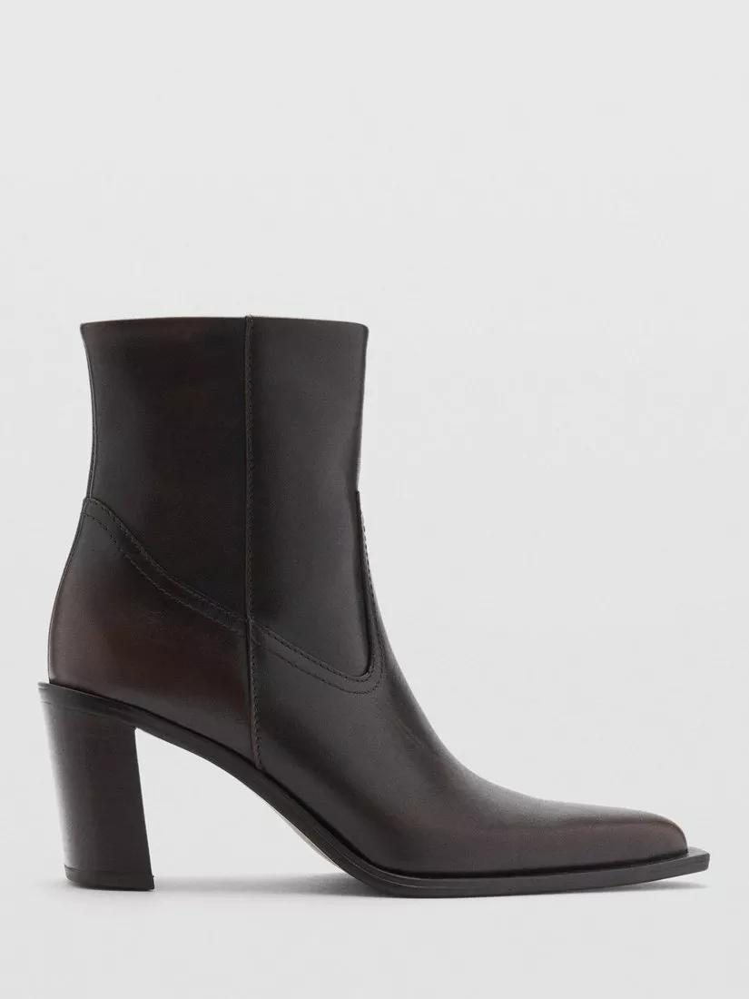 From Mango, these Moni ankle boots have been designed from leather with a block heel and pointed toe. A side zip offers easy access.
