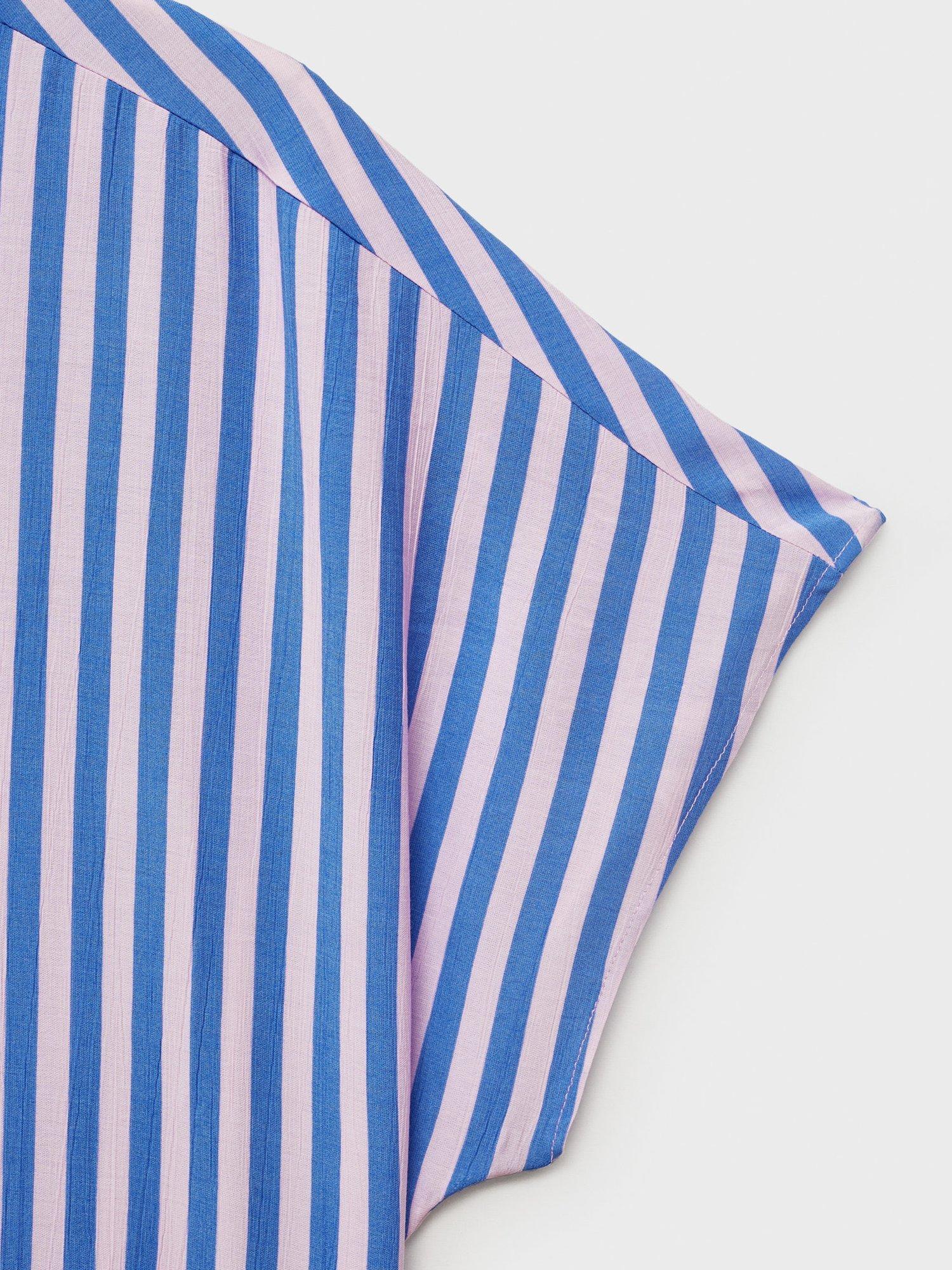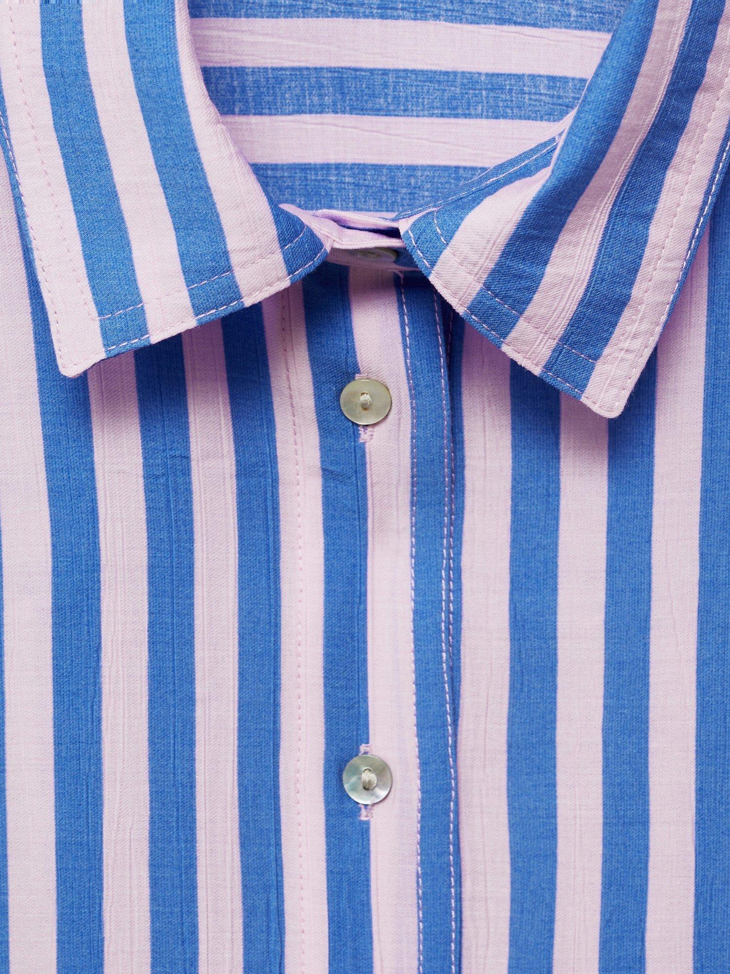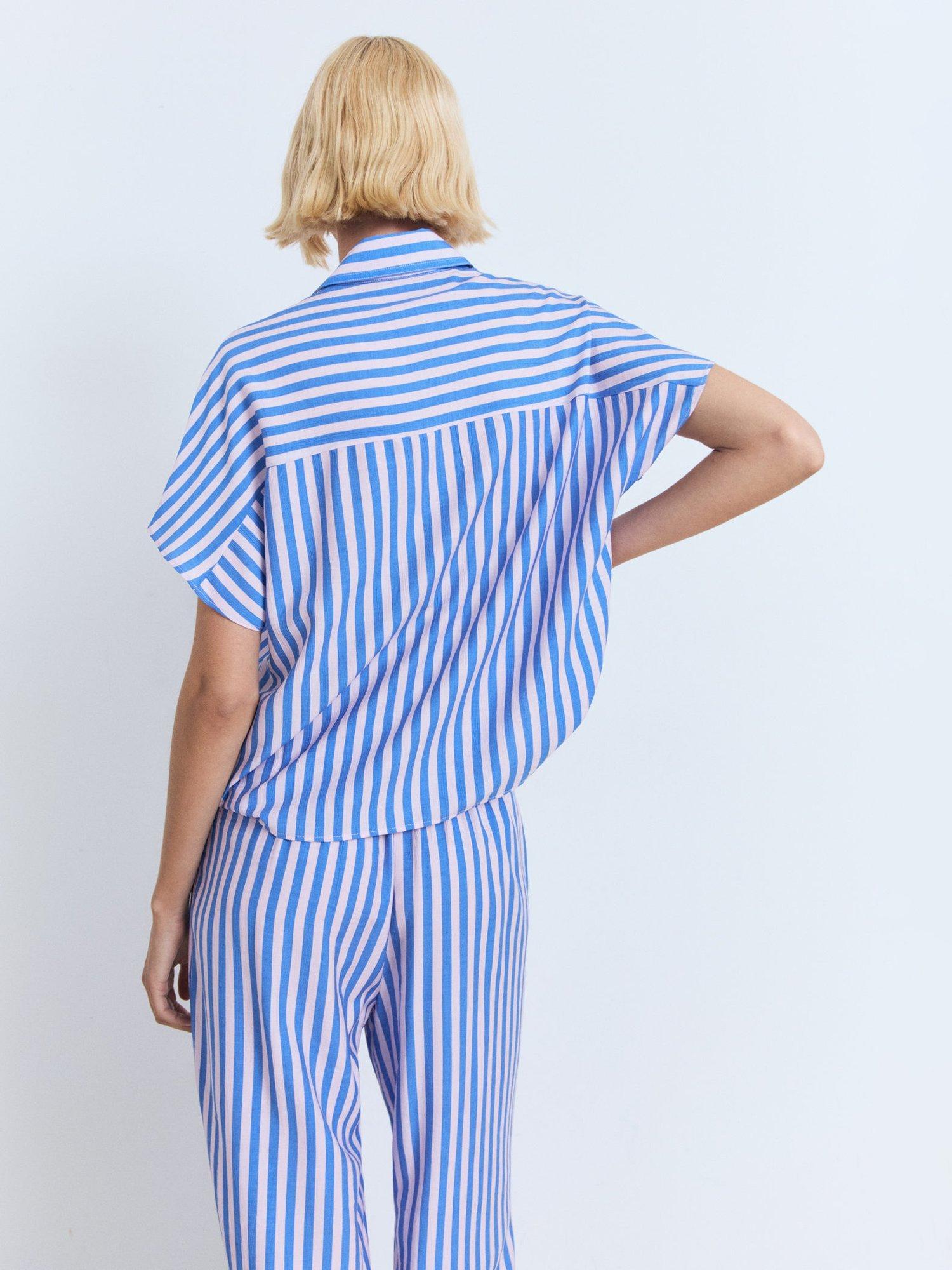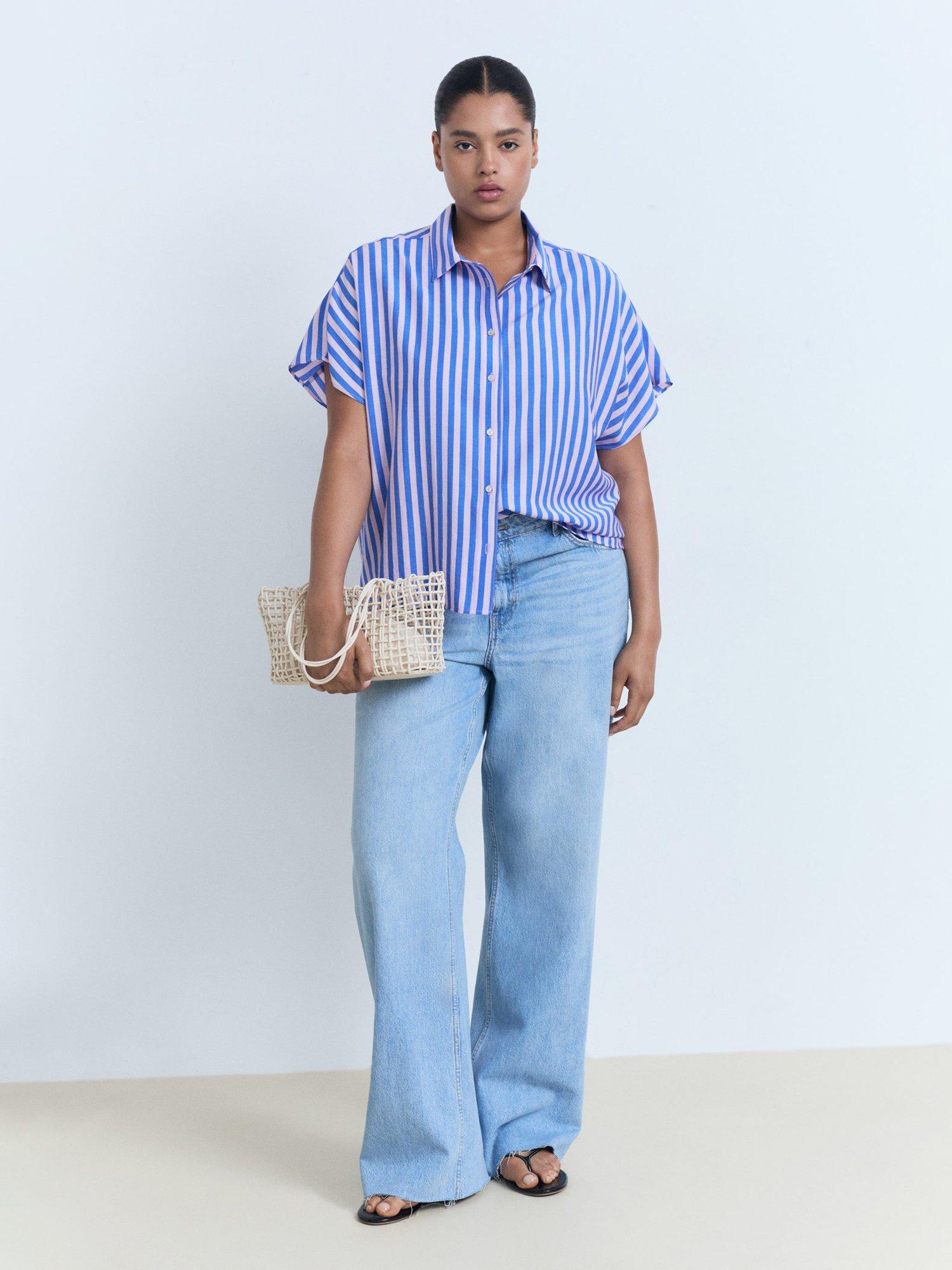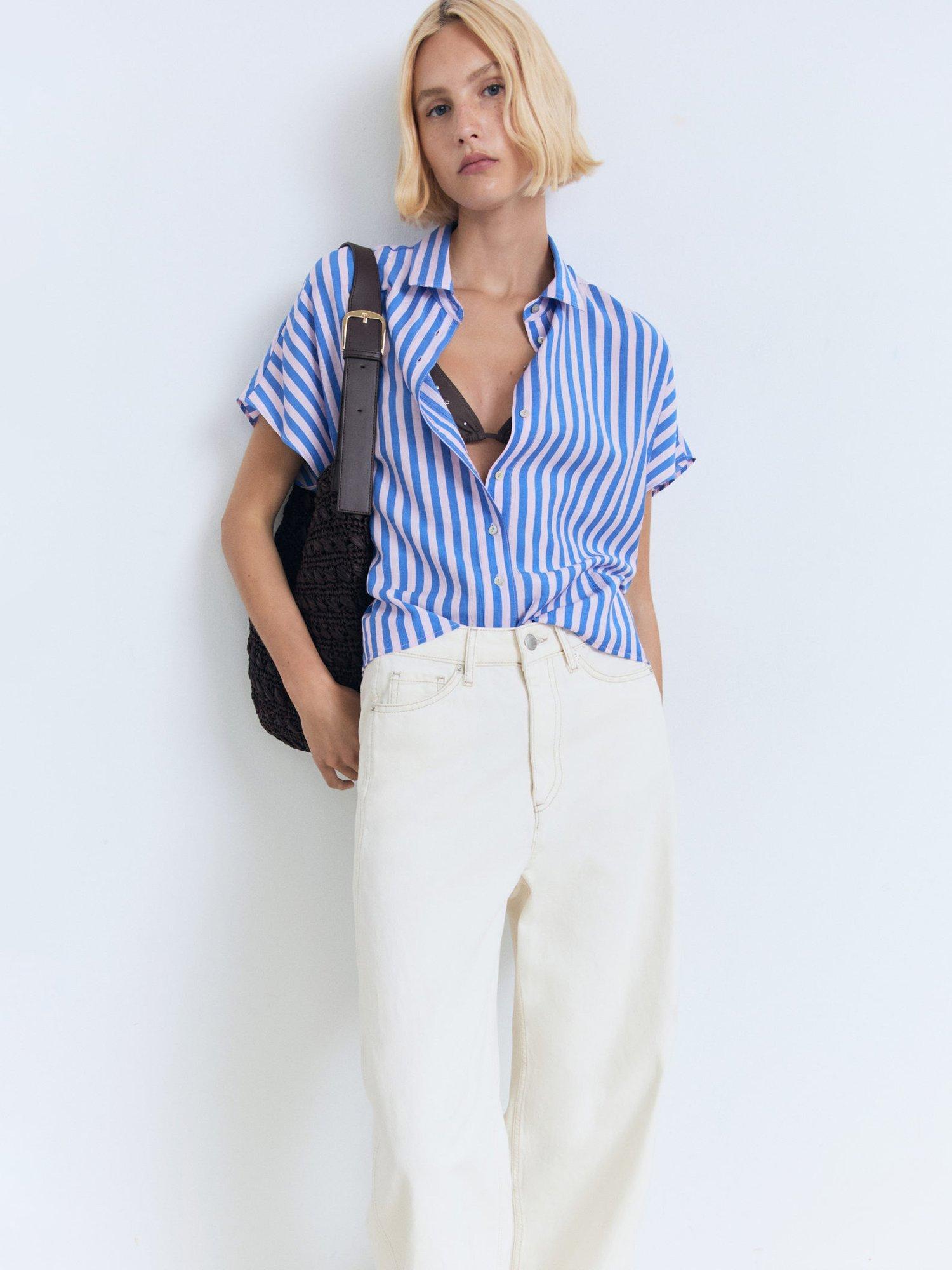 Mango’s striped blouse invites a fresh perspective to your day, blending refined tailoring with a playful twist. The lightweight viscose mix ensures comfort, while the sharp collar and short sleeves make it a versatile choice for any occasion.
