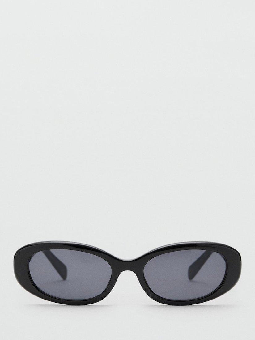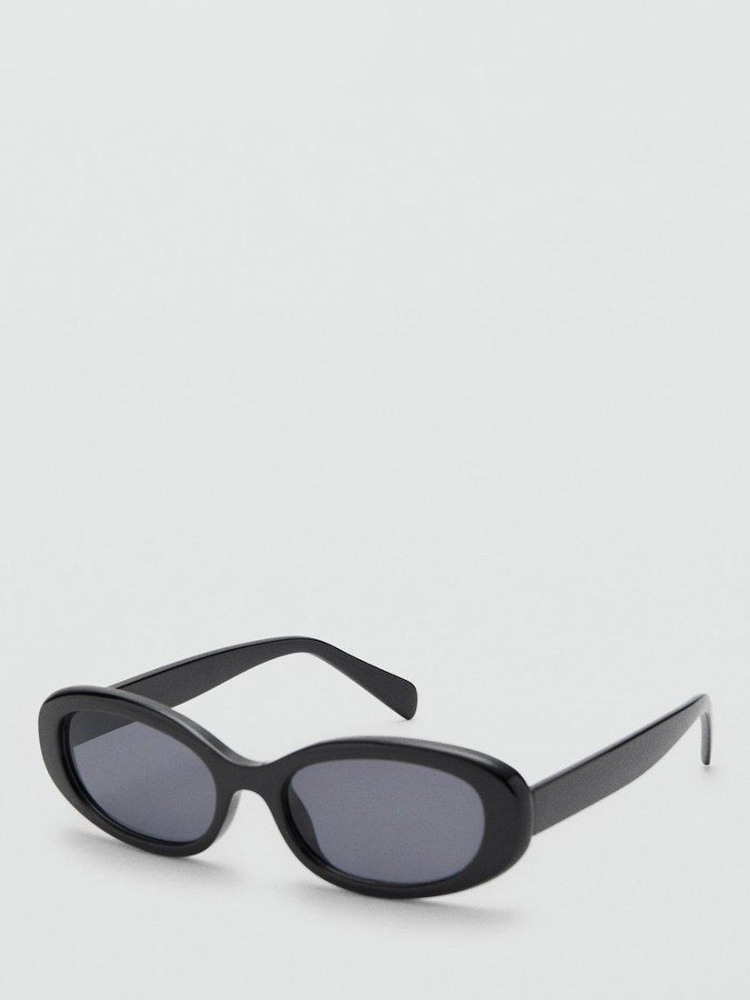 MangoNantes Oval Sunglasses, Black/Grey, One Size