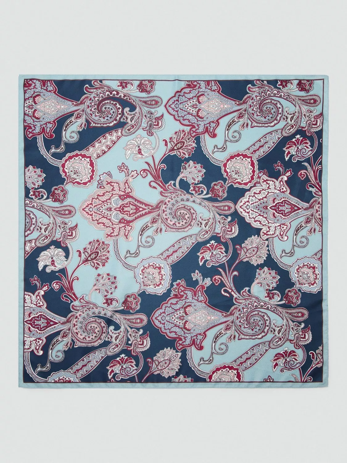 A soft square scarf detailed with a characterful paisley pattern.