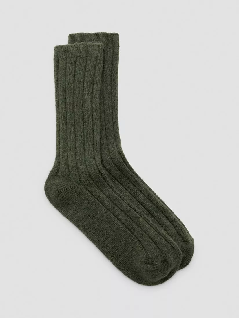Ribbed socks made with a small amount of wool and cashmere for an even softer feel.