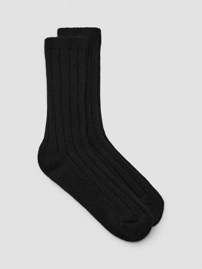 Ribbed socks made with a small amount of wool and cashmere for an even softer feel.