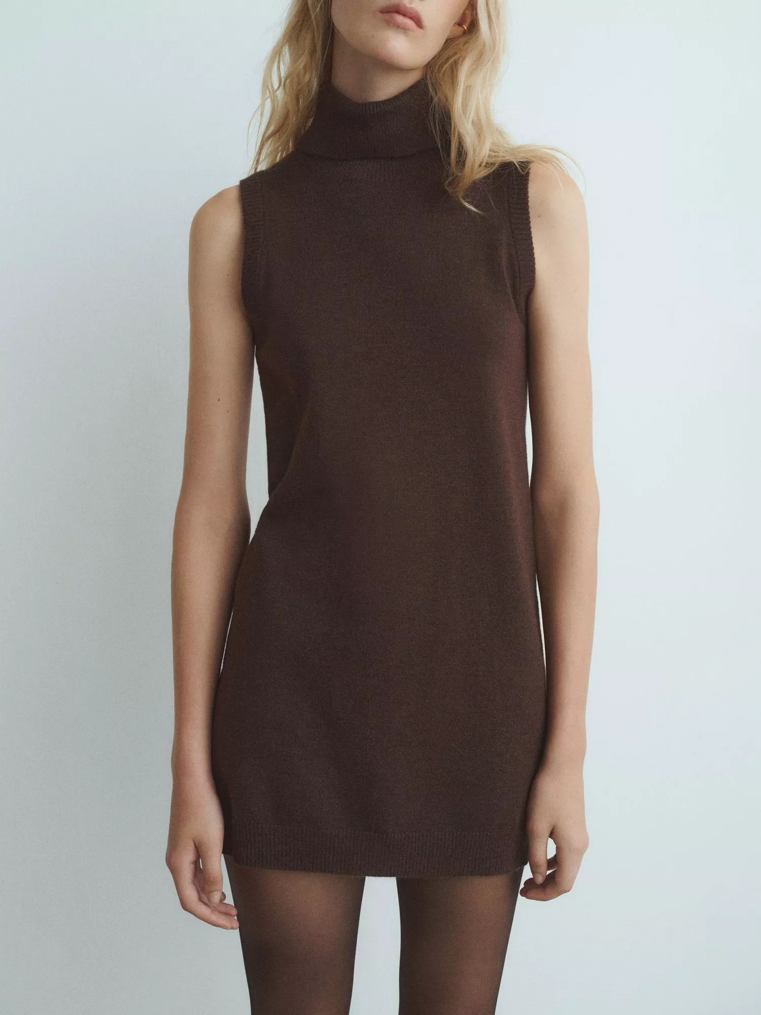 Expect both cosiness and compliments. This sleeveless mini dress from Mango features a warming turtle neck and an easily styled plain colouring.