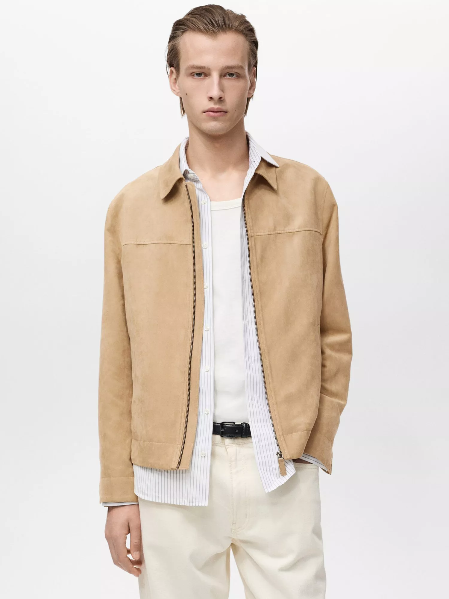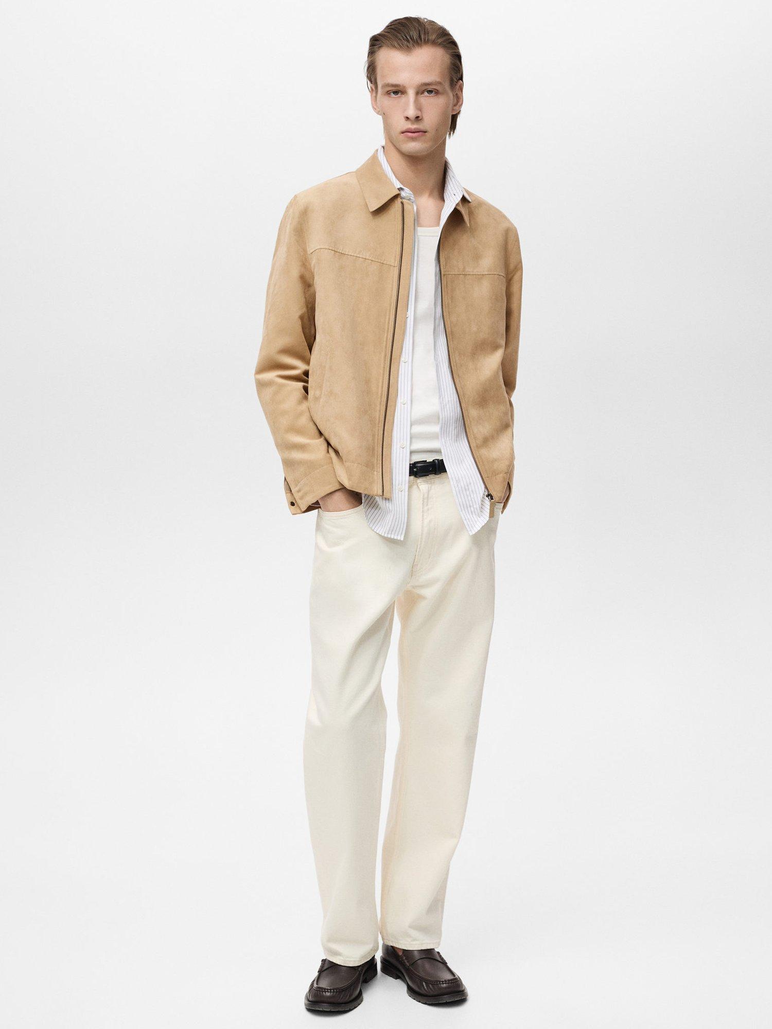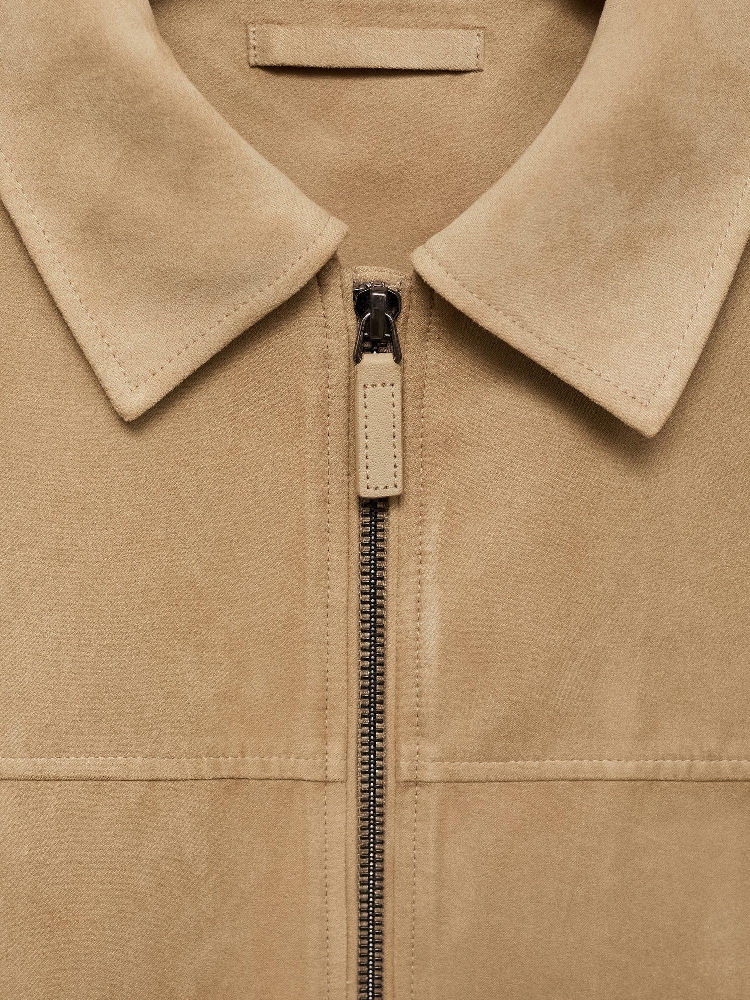 MangoNema Suede-Effect Regular Fit Zipped Jacket, Light Beige
