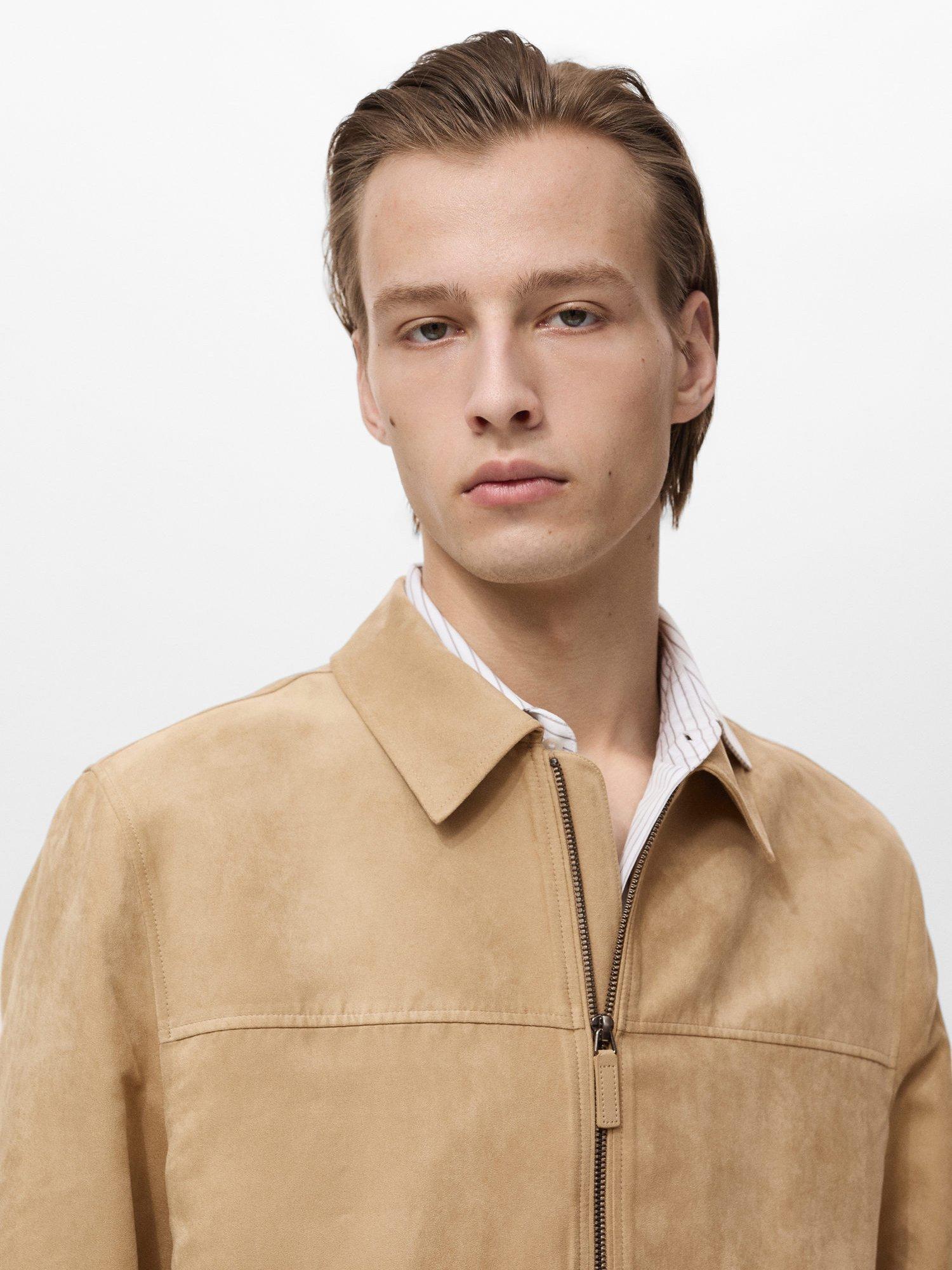 Made with robust suede-effect fabric to a regular fit, this jacket from Mango zips through the front for easy fastening.