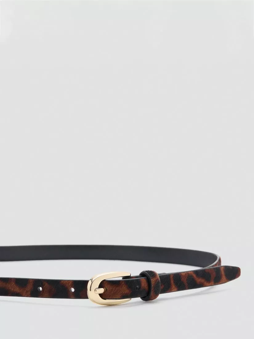 Leopard print belt with a buckle closure. A slim design, it's made from 100% bovine hair-on leather for a softly textured feel.
