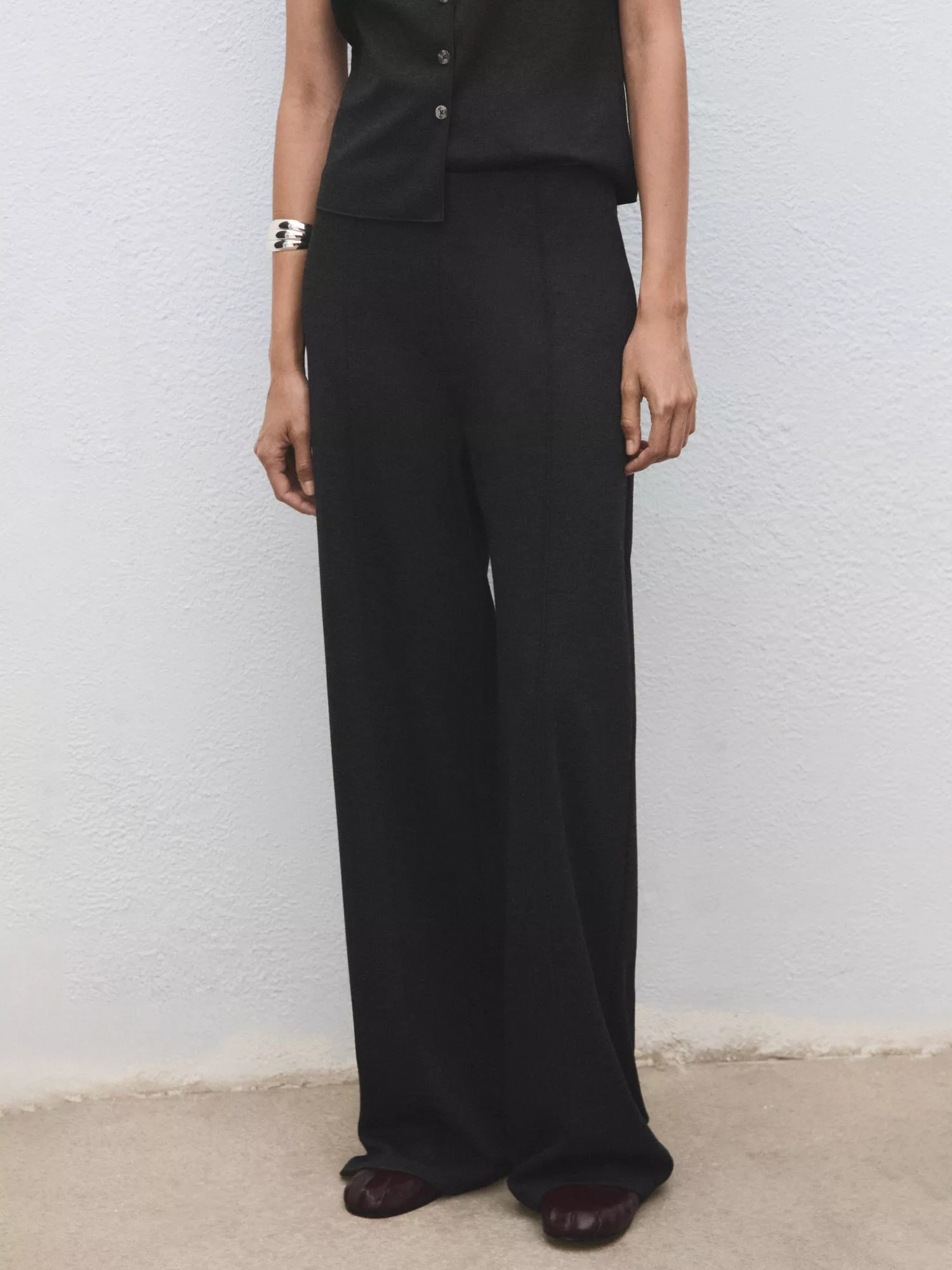 A pair of clean lined, no-nonsense straight-leg trousers by Mango. They feature a mid rise with a zip fly.