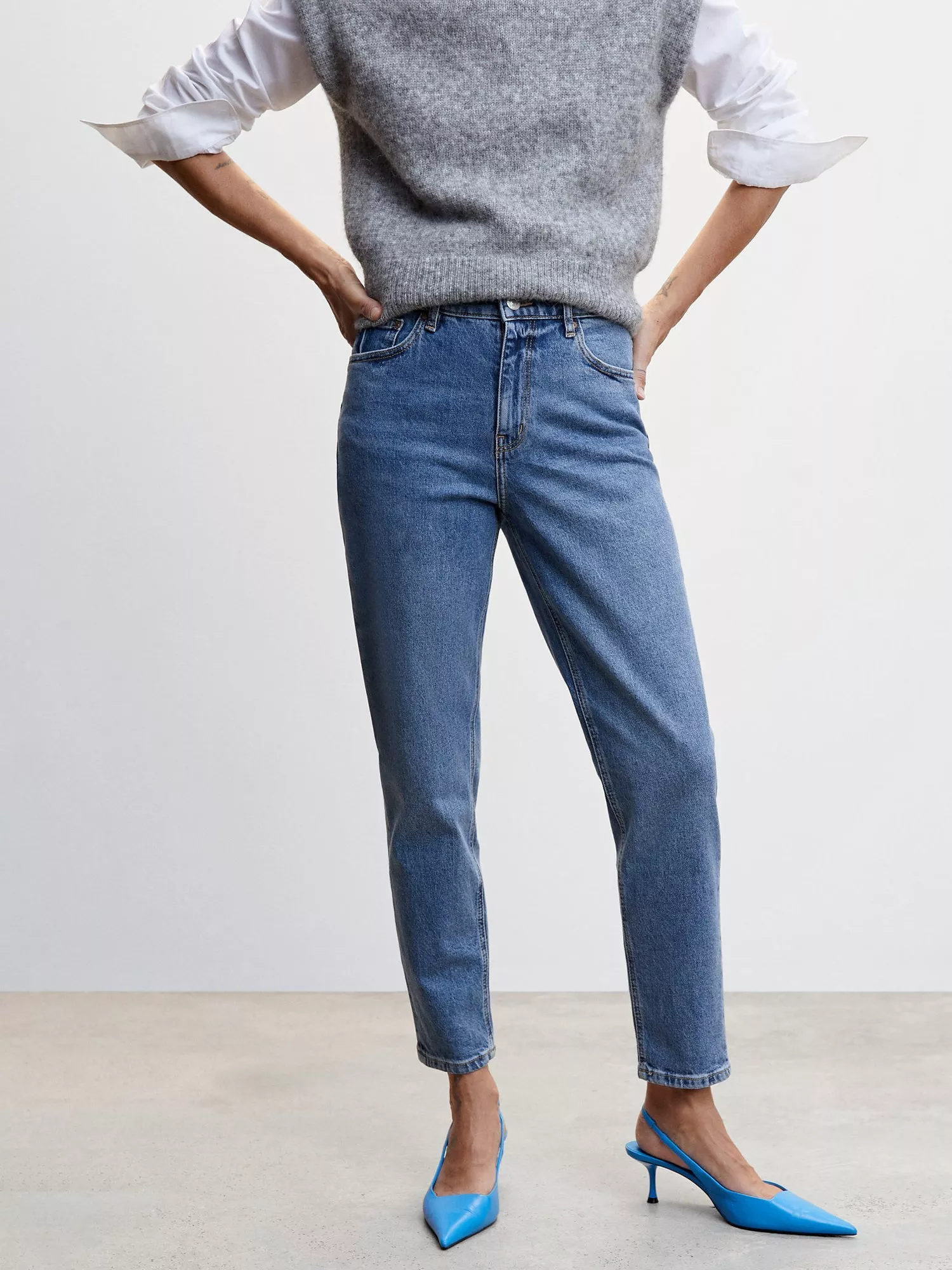 Cut to a tapered mom silhouette, these high-waisted jeans by Mango are made from a hard wearing cotton-blend and graze the ankles for an on-trend look.