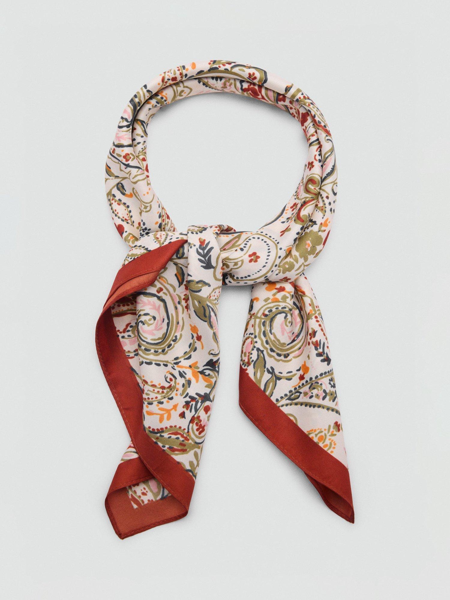 Super soft and lightweight, this satin square scarf from Mango boasts a pretty swirling paisley print throughout.