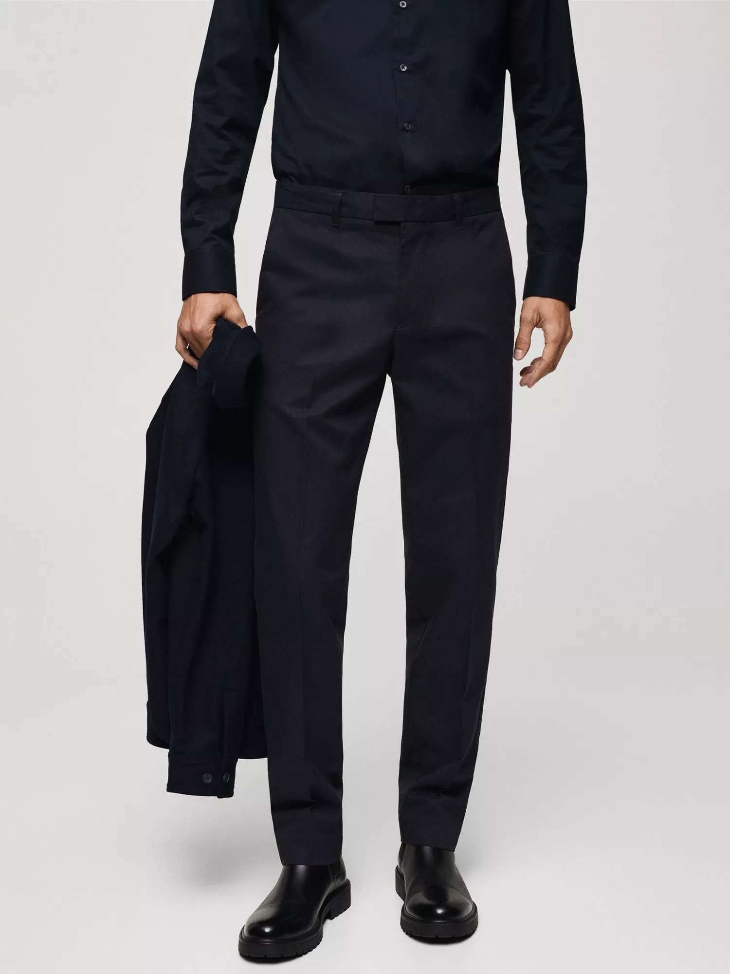 Representing the peak precision of tailoring, these trousers from Mango are kept comfy with their blended cotton composition. Cut to a regular fit, they're complete with two welt pockets, belt loops and a straight hem.