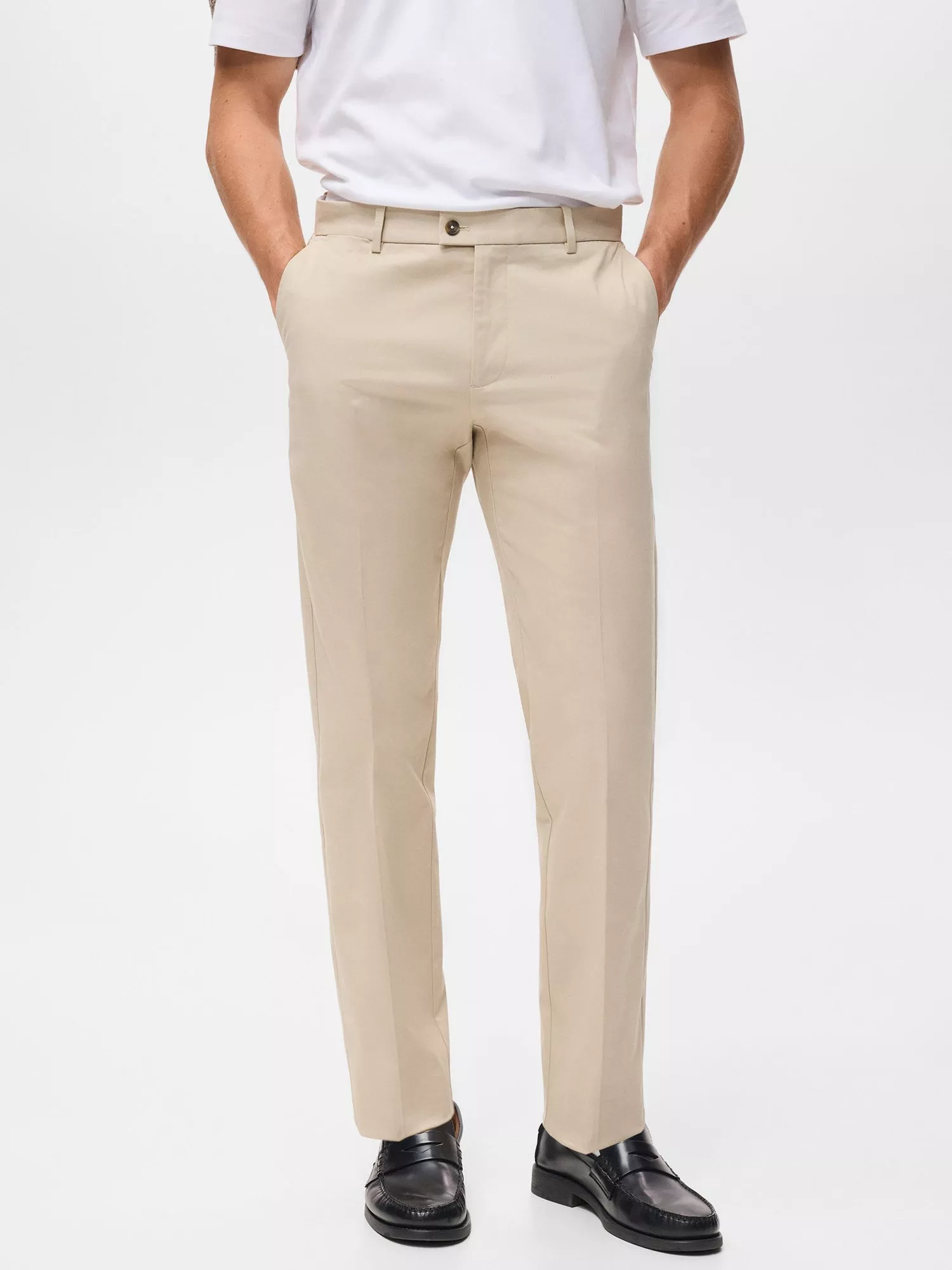 Straight leg chinos by Mango in a breathable cotton blend. Cleverly crafted for comfort and versatility, they suit any casual plan and keep you feeling assured wherever you go. Practical pockets meet a classic, easy-to-wear style.