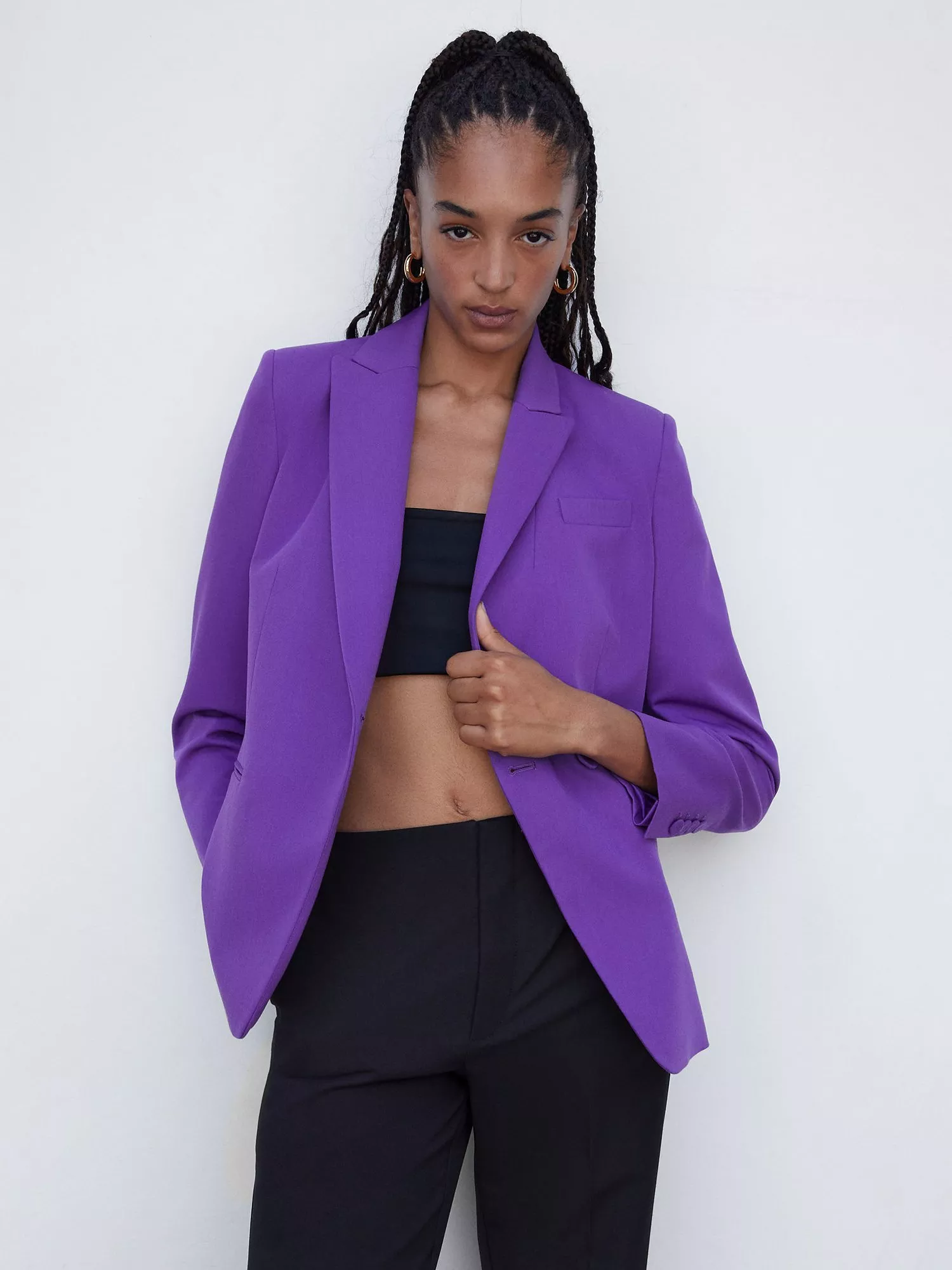 An elegant layering piece for smart events, this blazer by Mango falls to just below the waist for a contemporary profile.
