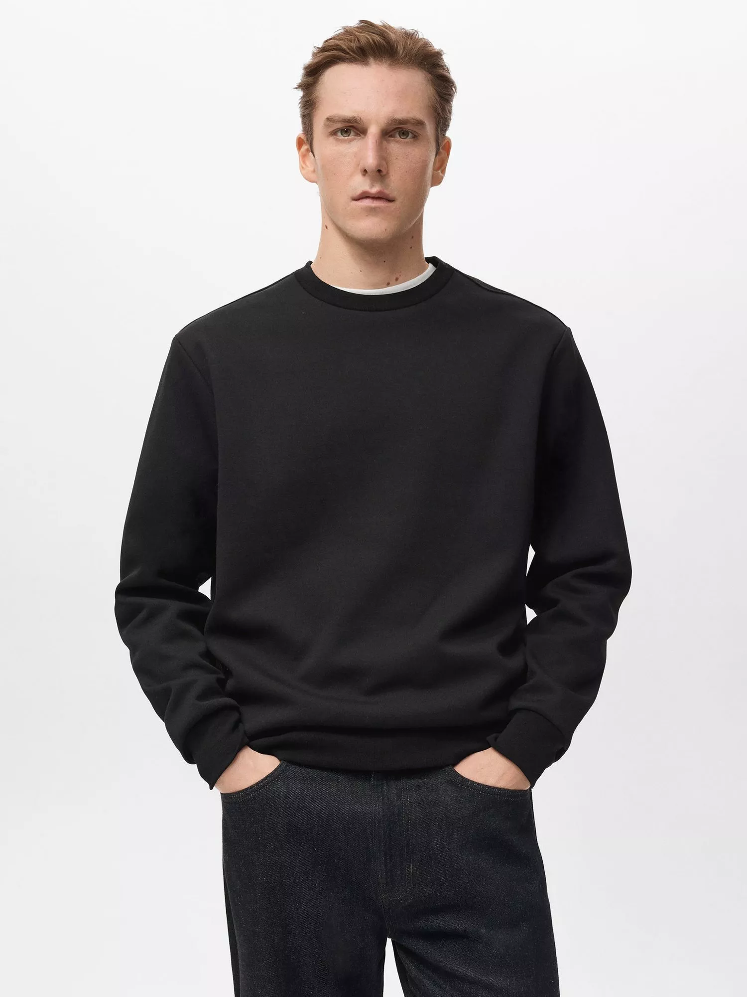 The ideal choice when temperatures start to drop, this crew neck jumper from Mango is rendered from a lightweight cotton blend for year-round appeal.