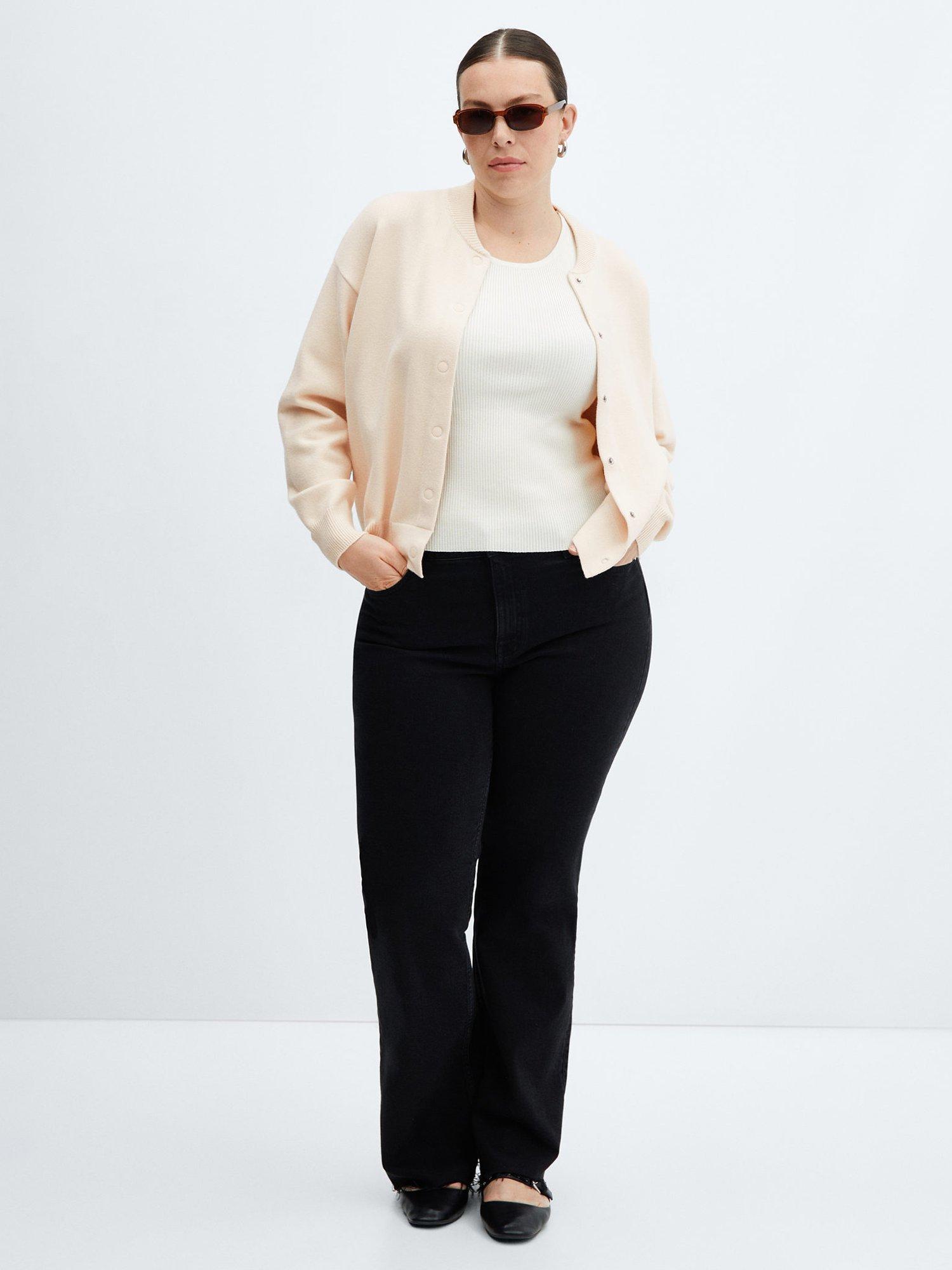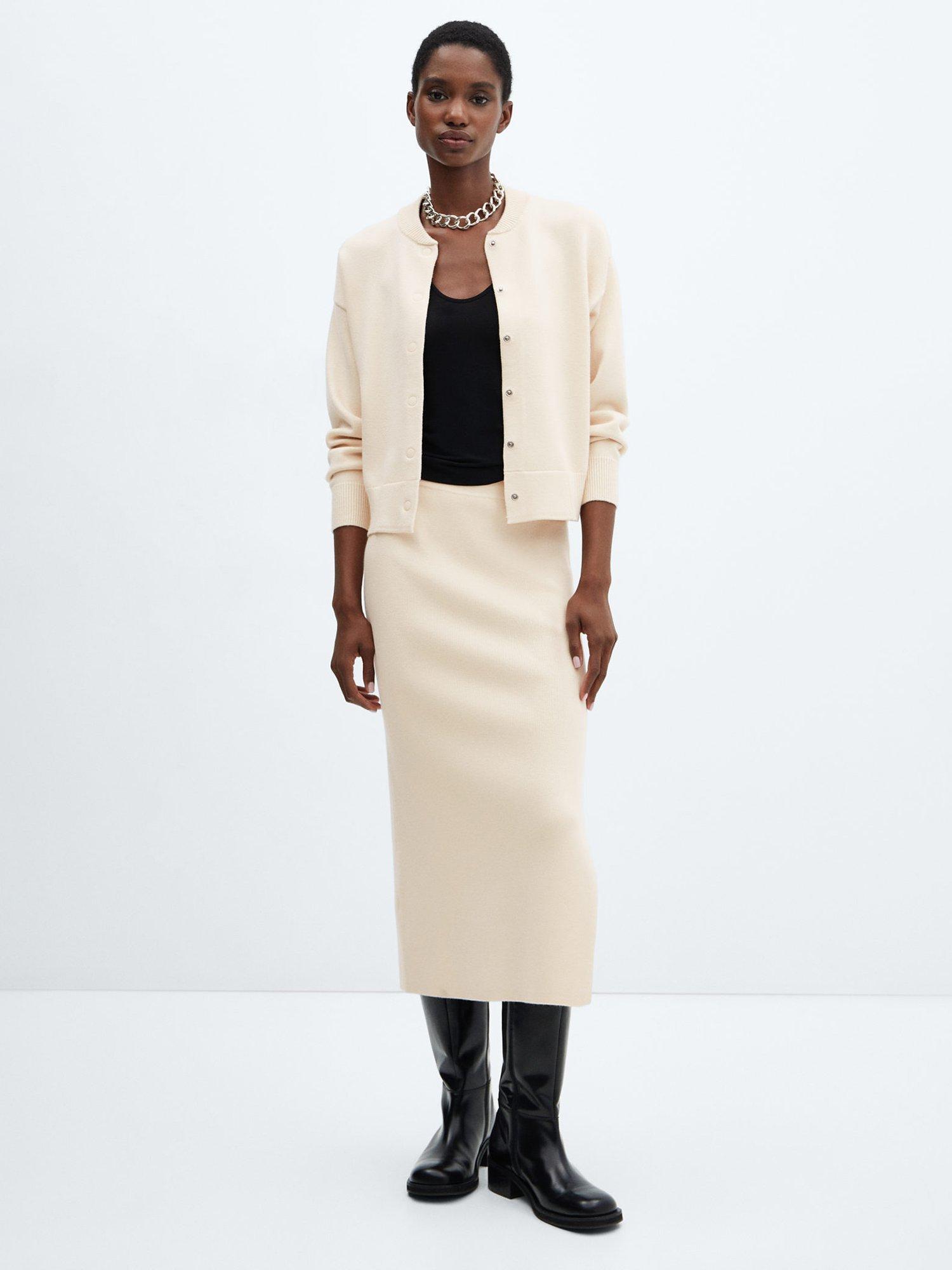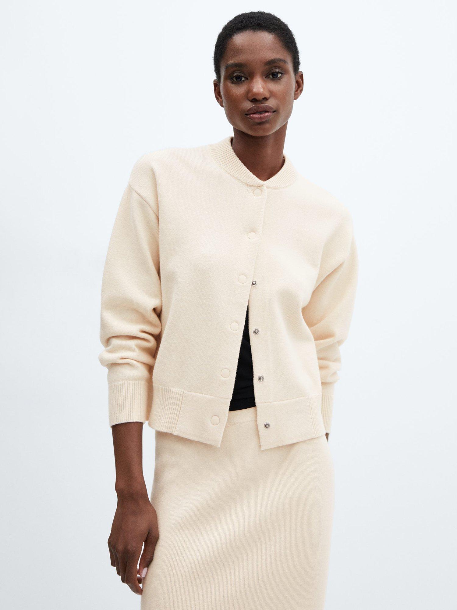 Styled with an easy round neckline, this knitted jacket from Mango is made with a longlasting fabric for longevity of wear.