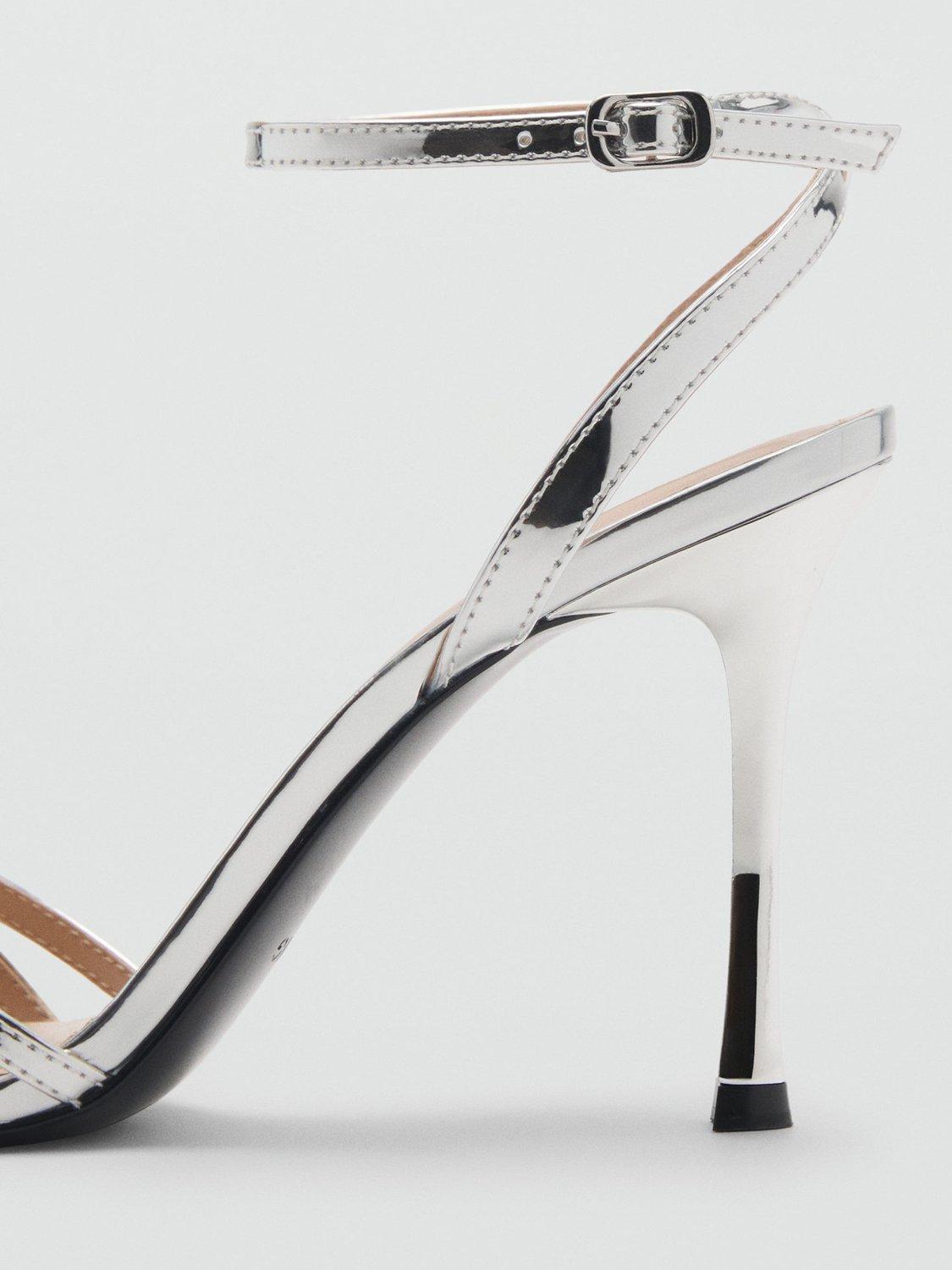 MangoNota Metallic Heeled Sandals, Silver