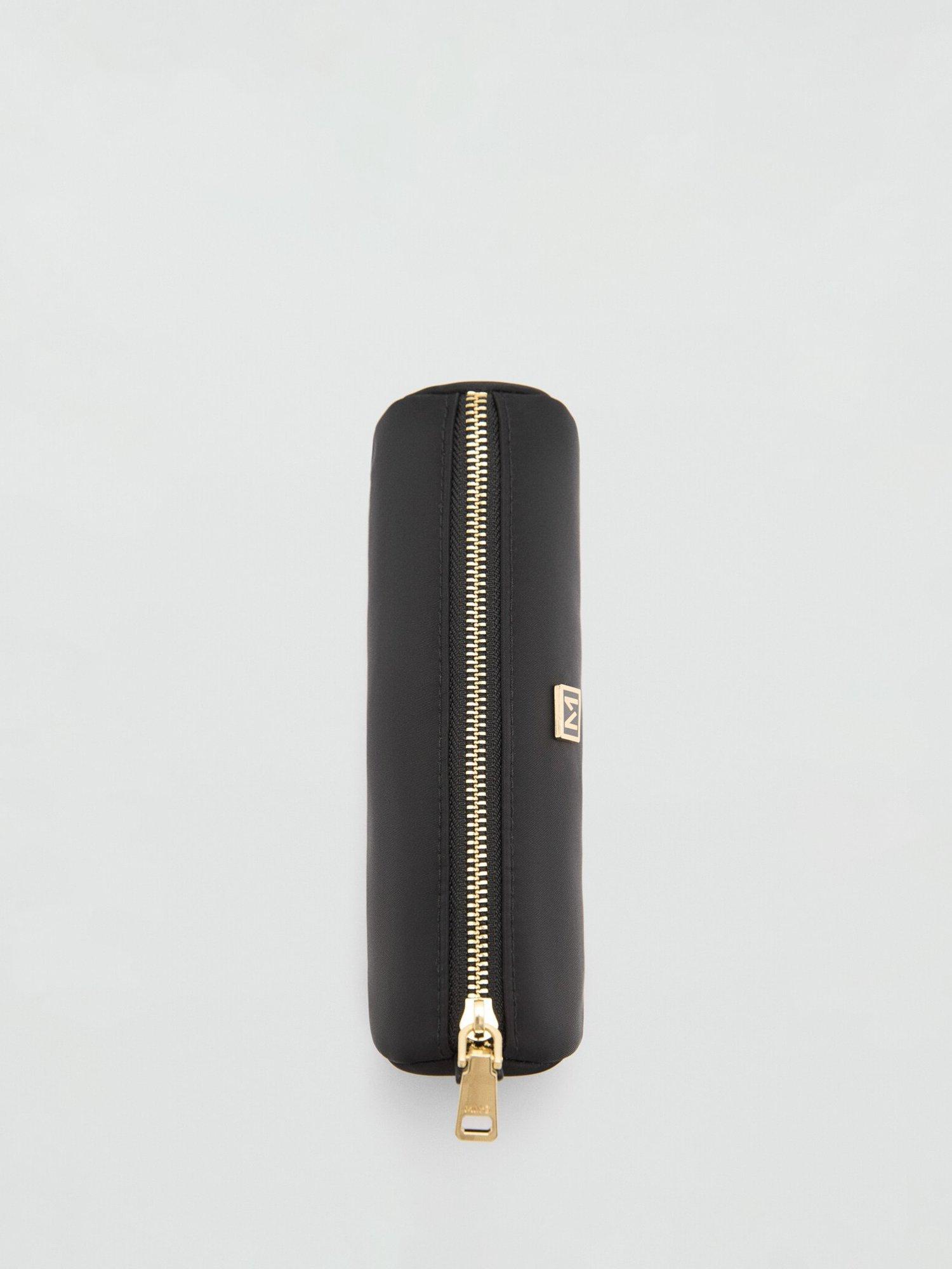 A cylindrical case from Mango, made from wipeable nylon with a zip fastening.