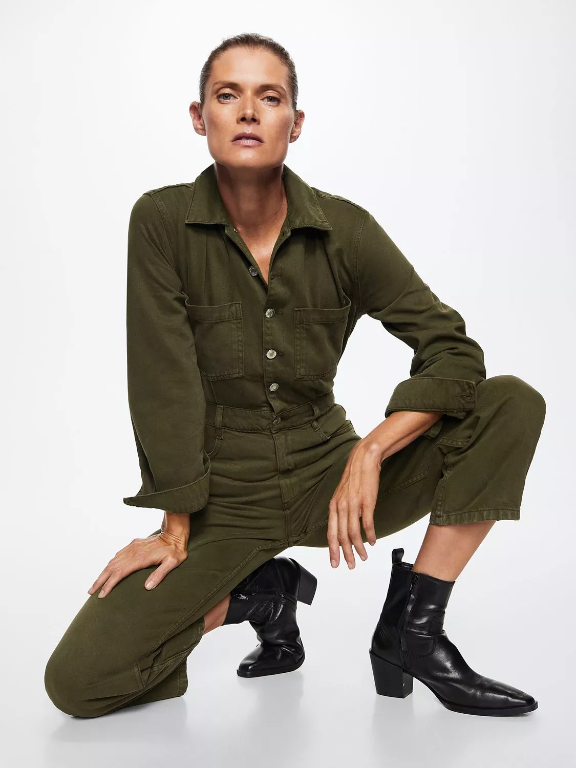 With a neat collar neckline and long sleeves, this jumpsuit from Mango falls straight through the legs and is crafted from chic yet robust cotton-denim.