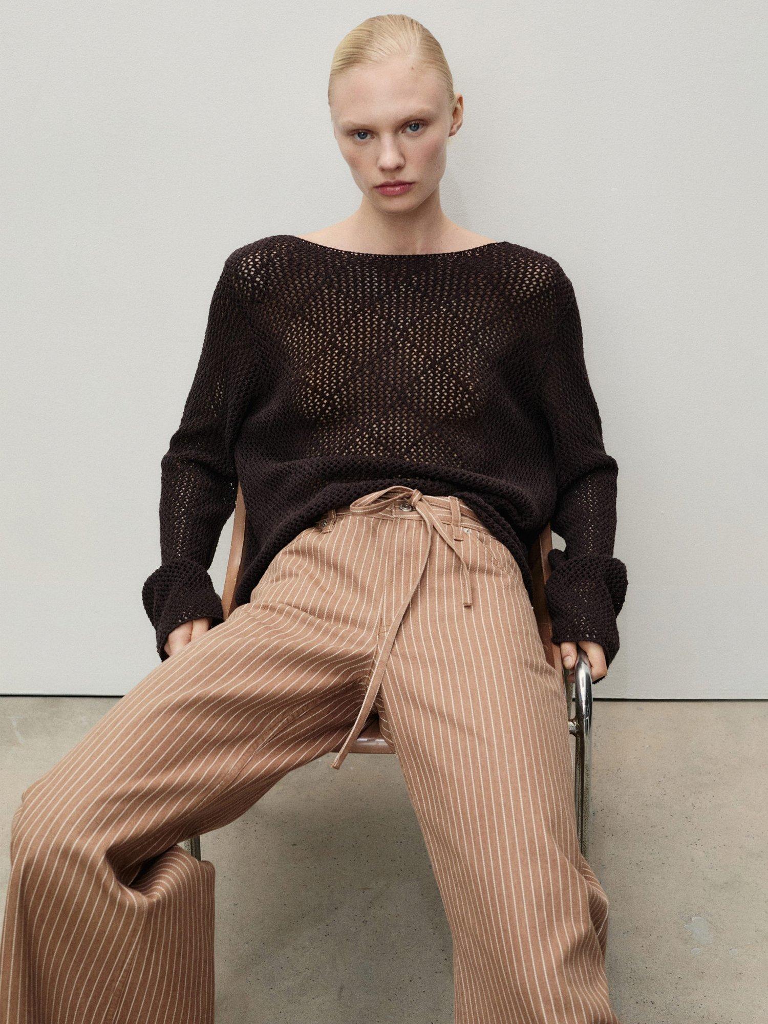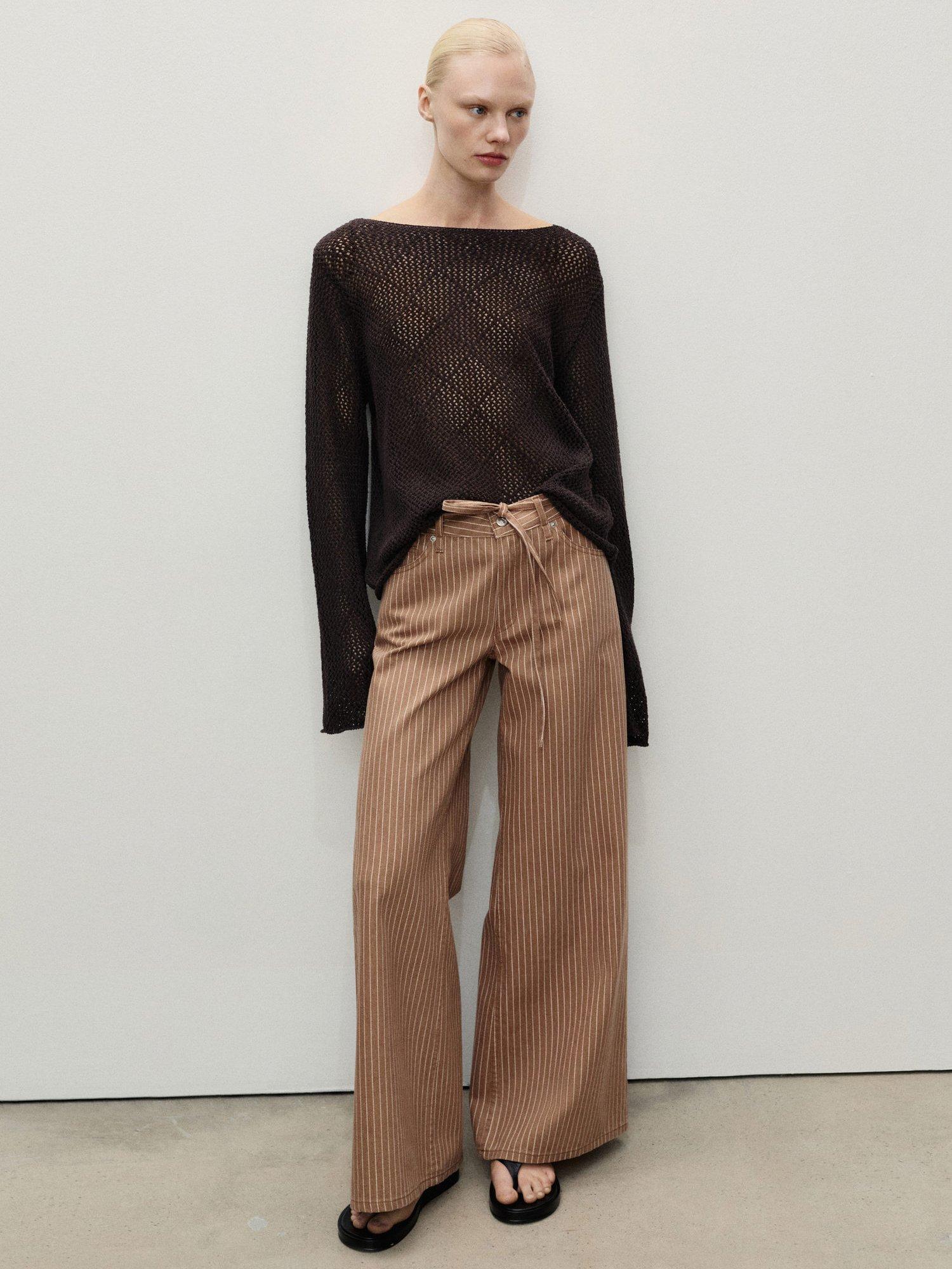 Super wide leg jeans from Mango with signature stripes. Made from pure cotton with a mid rise, they fall to a regular length.