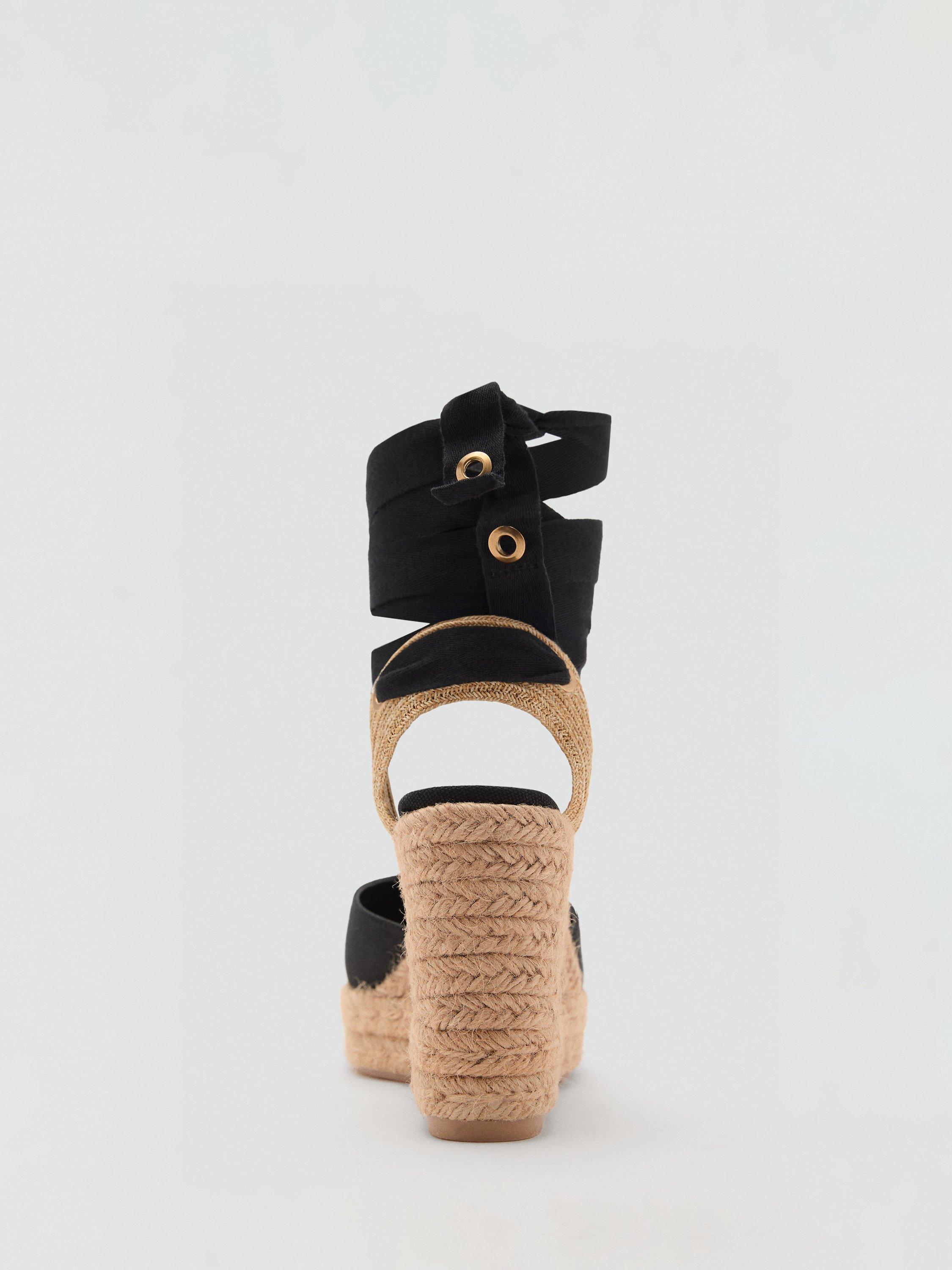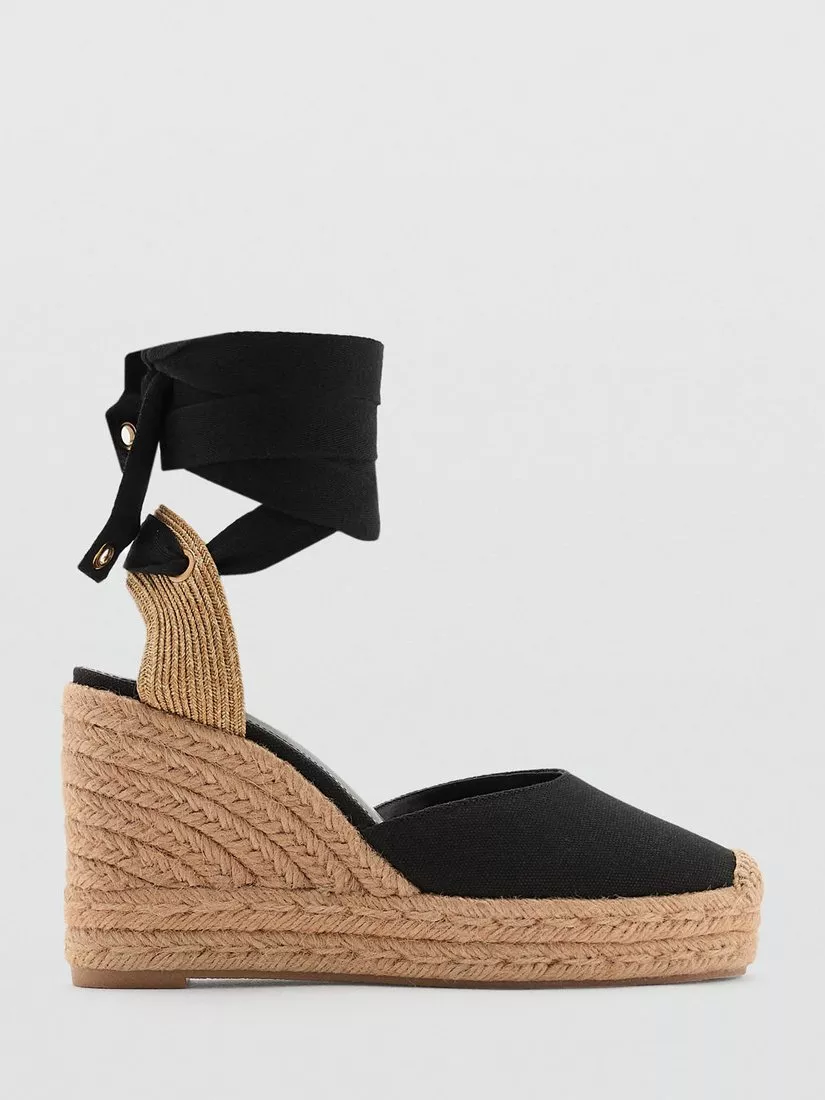 Wedge espadrilles, designed for all-day comfort and effortless style. The closed canvas toe and slip-on fit keep things easy, while the elevated rope heel and wrap ankle fastening adds a smart twist to your warm weather looks.