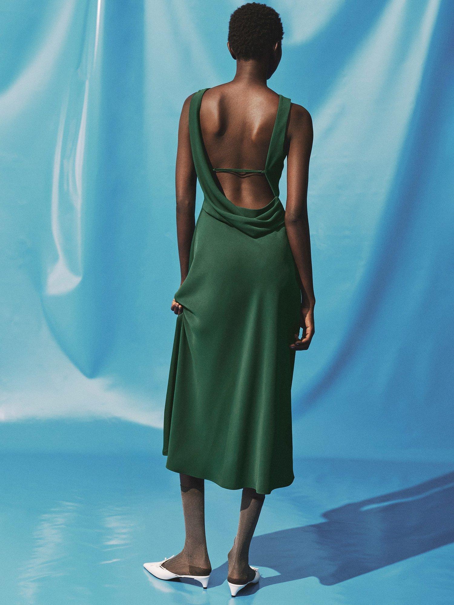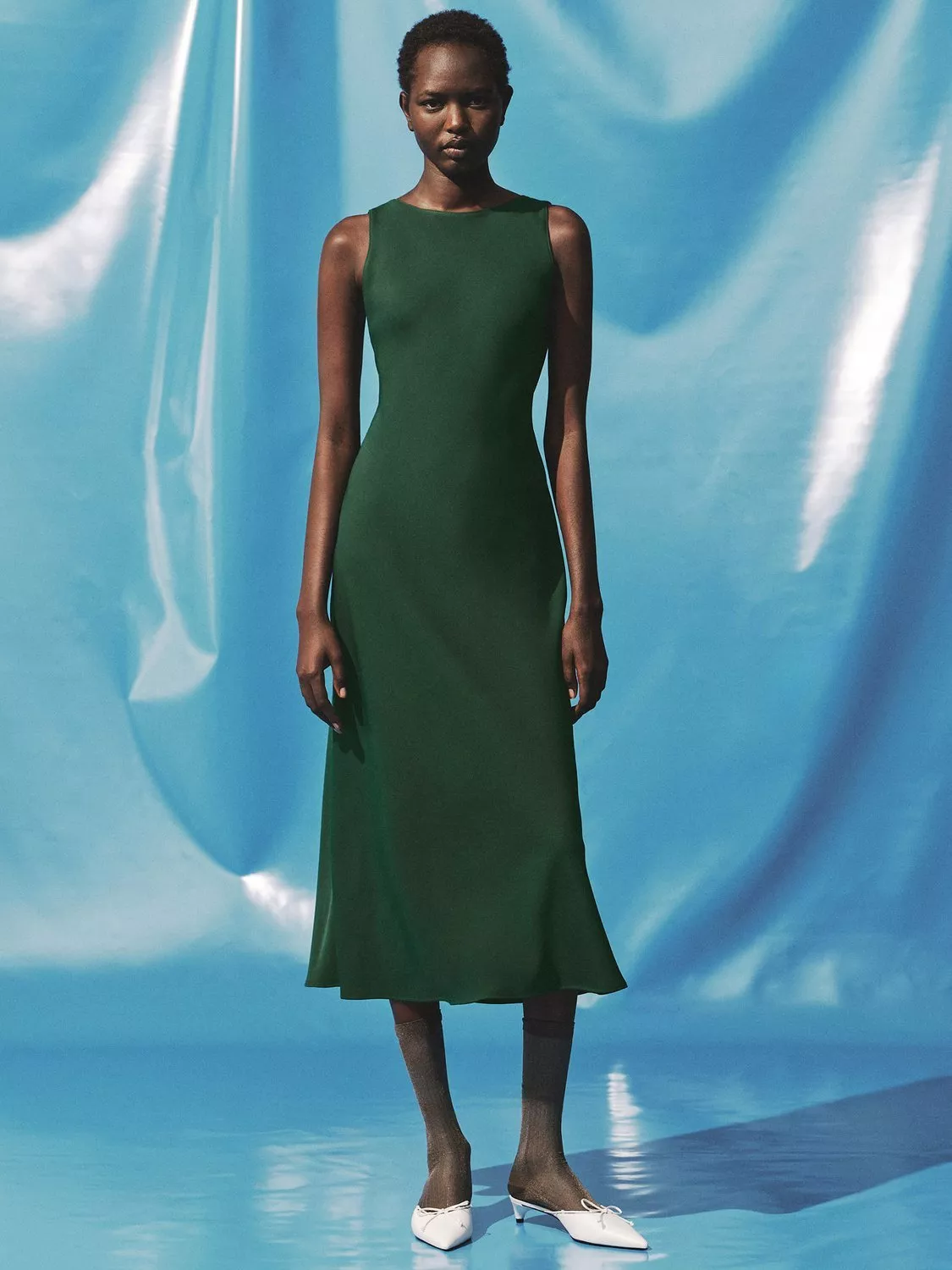 Command the evening in this midi A-line dress. The sleeveless cut, round neck, and open back combine for a look that feels fresh and smart. Designed for occasions where you want to express your unique outlook.