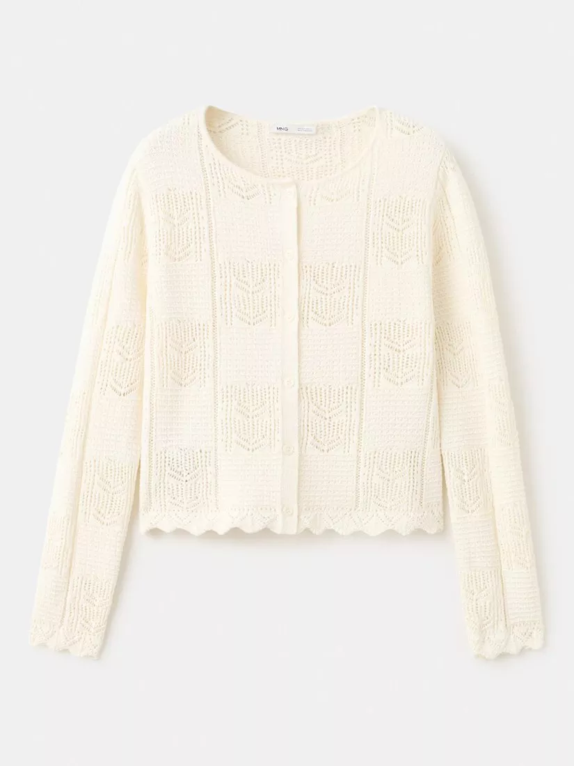Lift your every day with this cardigan. The cropped design, scalloped hem and floral pattern bring a fresh twist, while the round neck and medium weight make it an easy, comfortable layer for any outing or occasion.