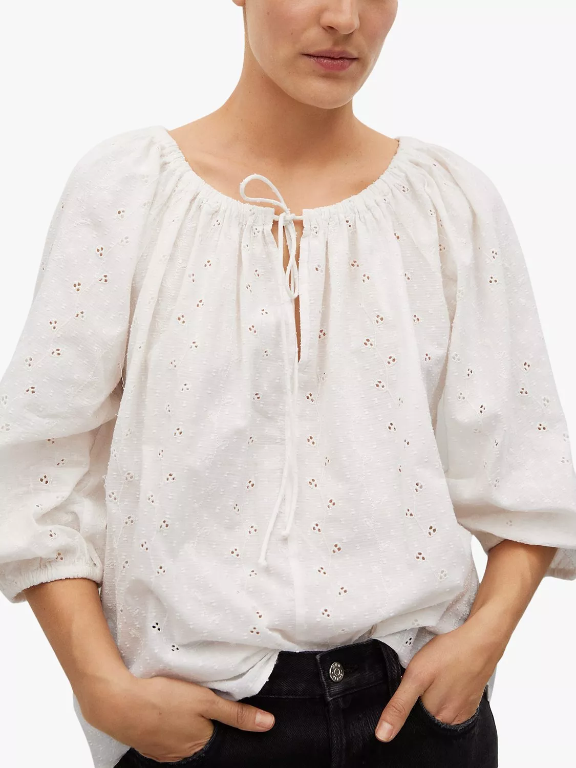 Bringing a neat addition to your wardrobe, this blouse from Mango is delicately adorned with embroidered detail.