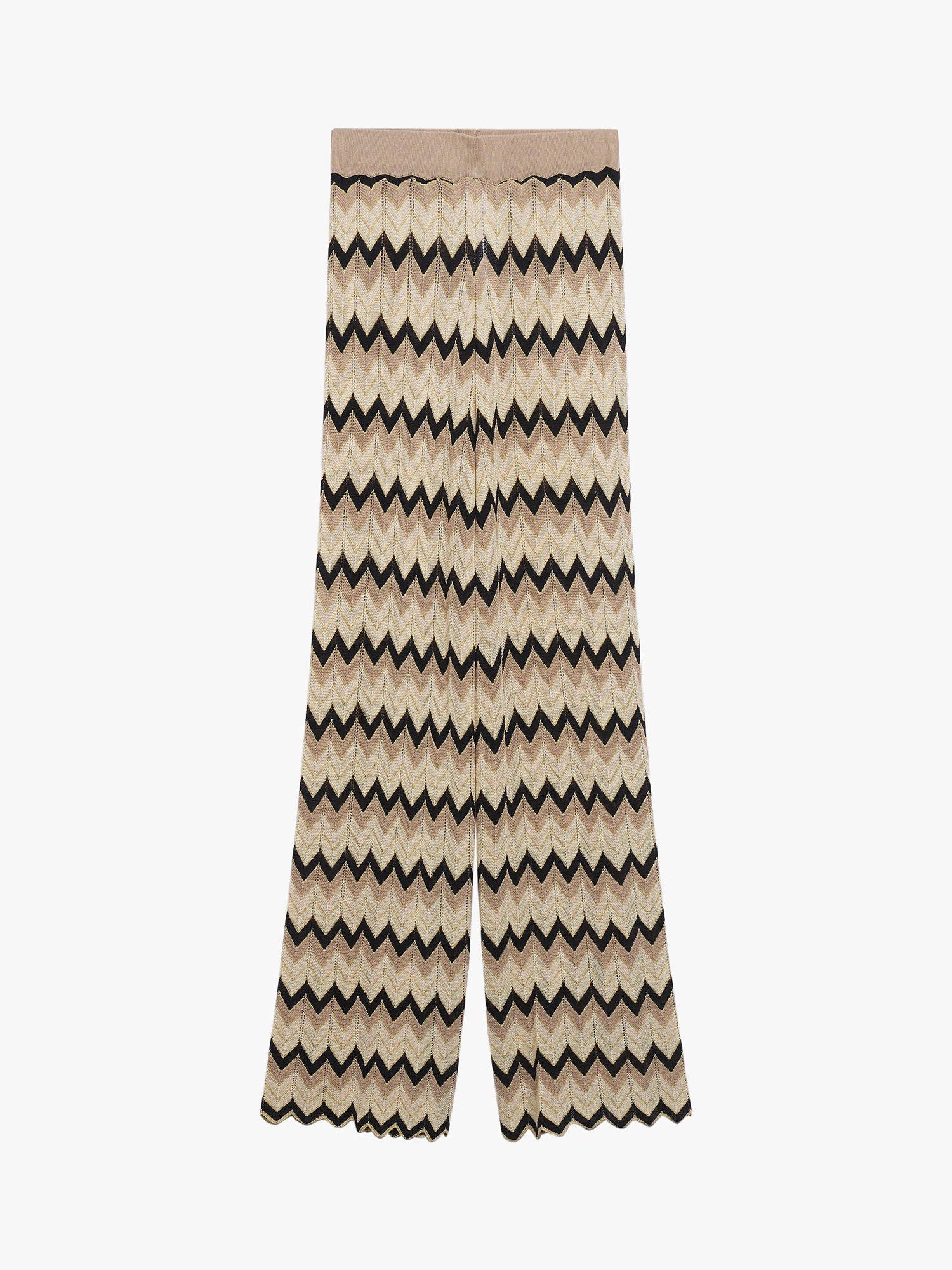 With an elastic high waistband and geometric pattern, they elongate and flatter the leg with a flared cut.