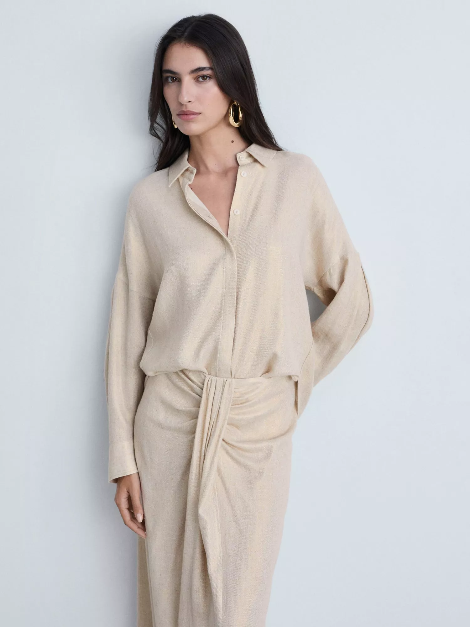 Elevating your everyday, this shirt from Mango is free-from-fuss for timeless appeal. Designed with a crisp collar neckline and long sleeves, it is made from a soft viscose blend with a textured finish.